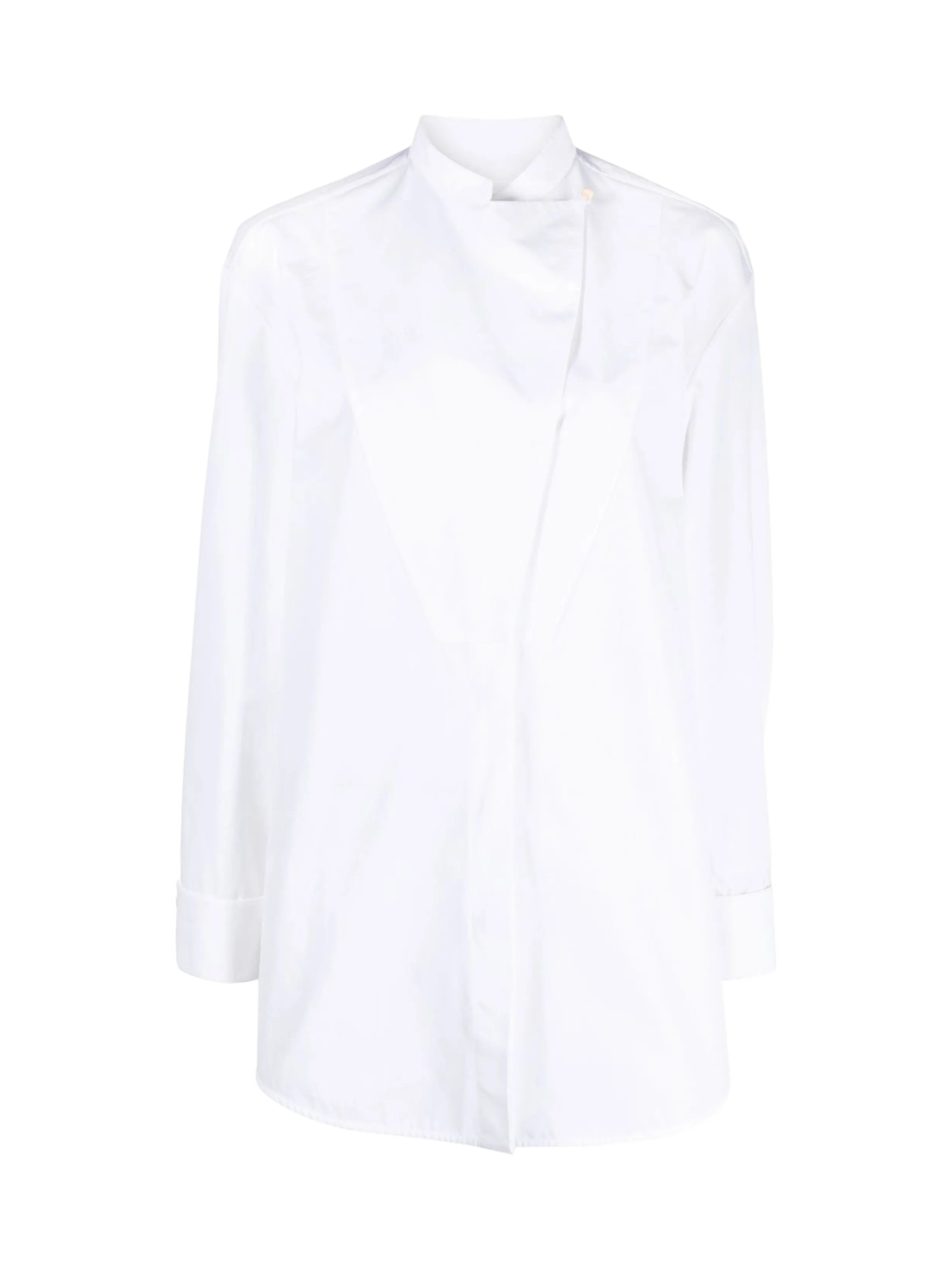 Блуза Jil Sander - это эталон минималистичного дизайна, где форма следует за функцией, а качество говорит само за себя. Выполненная из 100% хлопка премиального сорта, она дарит коже мягкость, свободу дыхания и тактильный комфорт. Классический воротник с чёткими линиями и длинные рукава создают строгую, архитектурную основу, а застёжка спереди на пуговицы сохраняет безупречную чистоту силуэта. Она станет вашим надёжным союзником в любой ситуации, даря уверенность и ощущение безупречного вкуса.