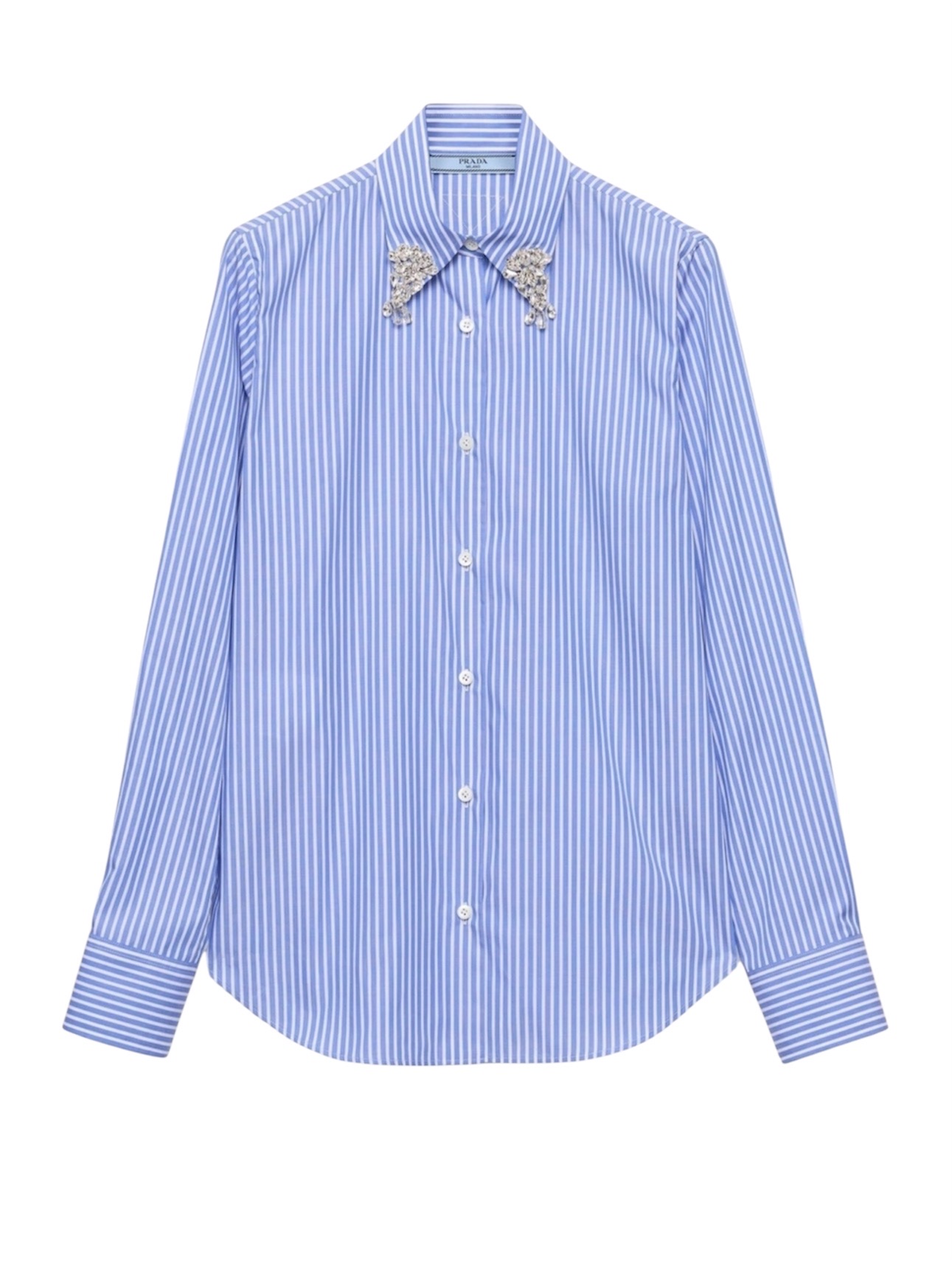 Блуза Prada - безупречный крой, сдержанная палитра и фирменные детали, говорящие о статусе без лишней демонстративности. Деталь с кисточкой у подола - игра на грани строгости и артистизма. Идеальный светло-голубой оттенок – свежесть, сочетающаяся с любым типом внешности. Это не просто рубашка, а интеллектуальный акцент в гардеробе. Она говорит о том, что её владелец ценит неочевидную роскошь, где главное – не лого, а безупречность линий и глубина деталей. Prada в её самой аутентичной форме.