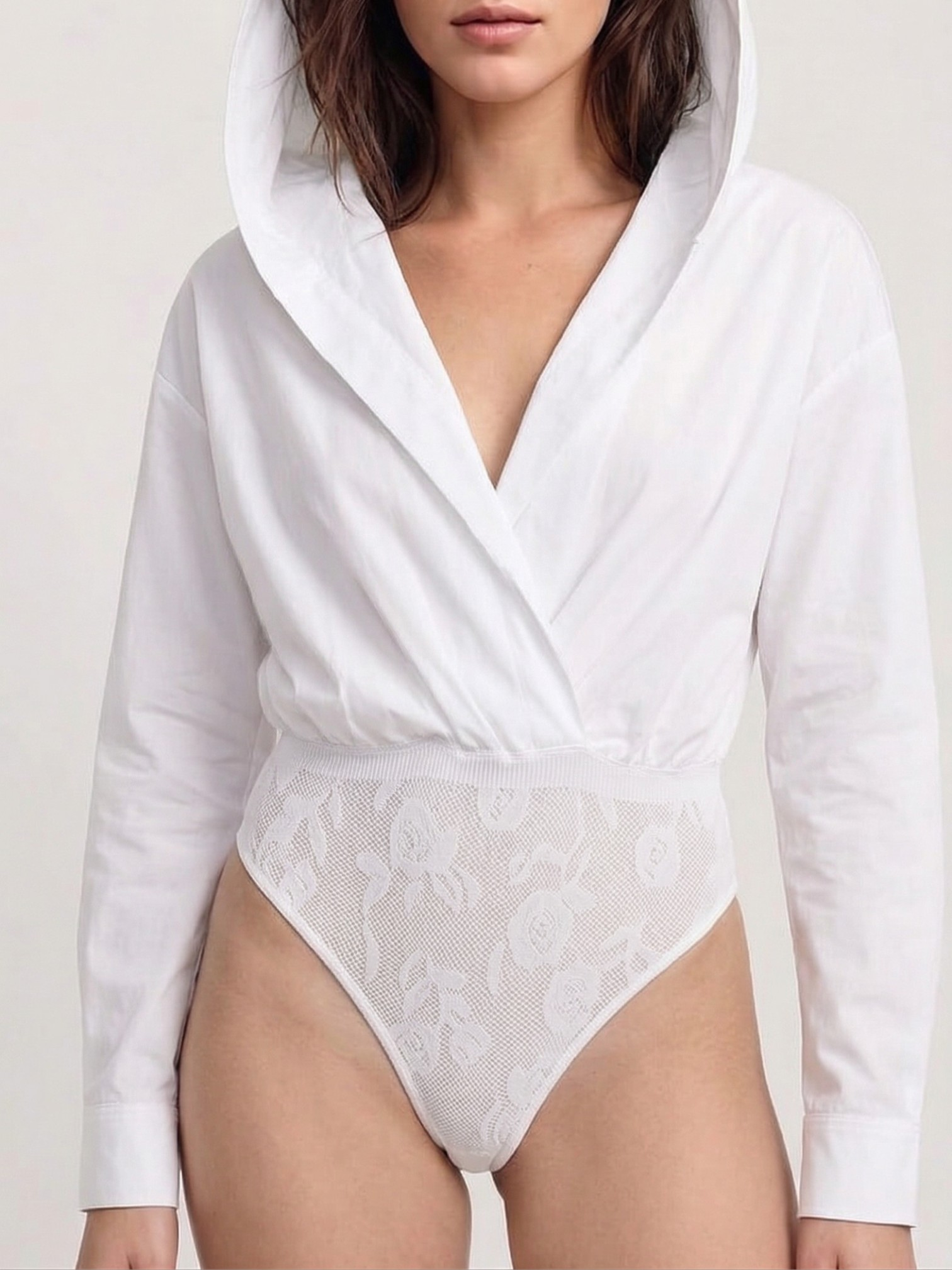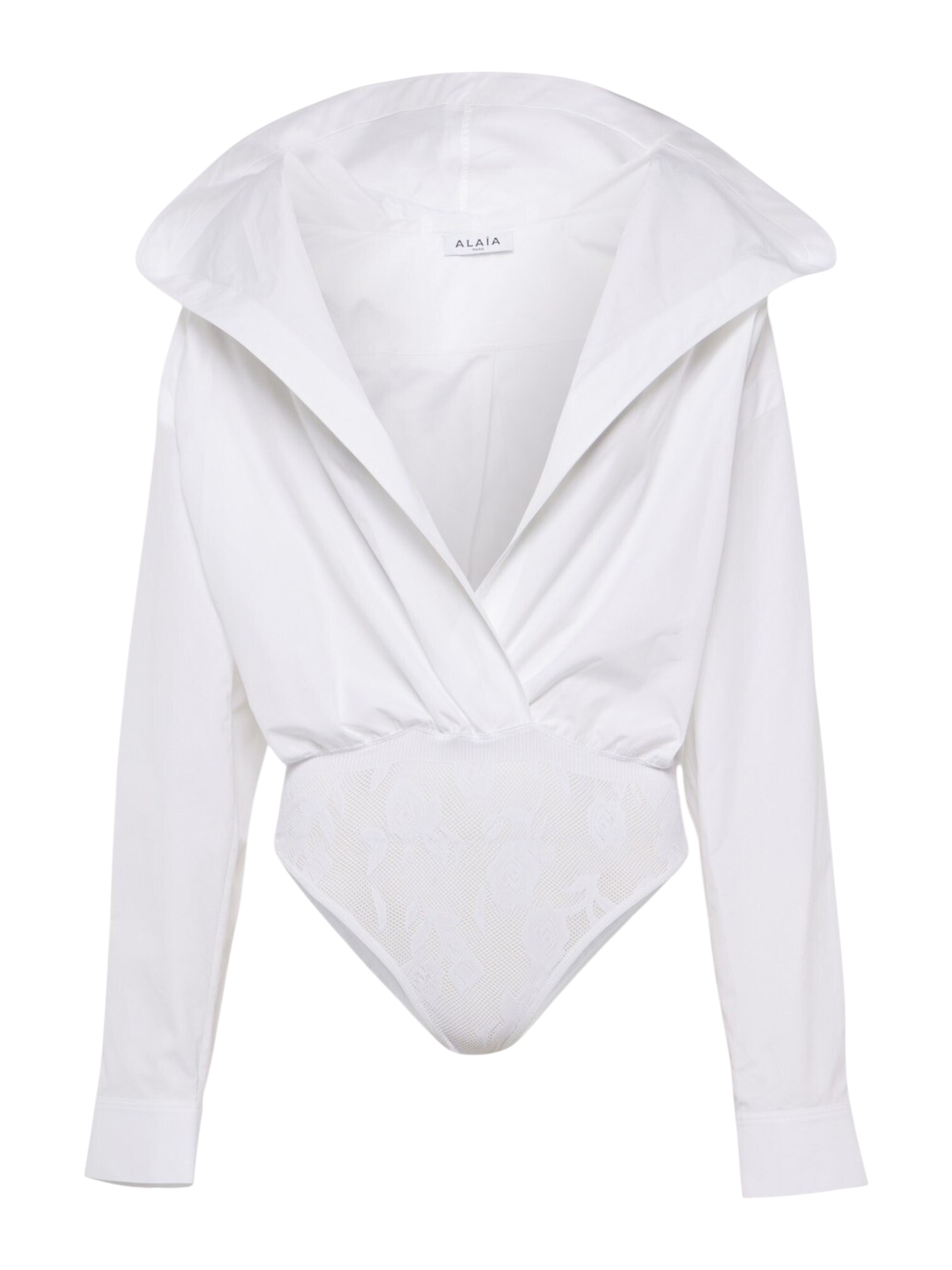 Боди Alaïa - авангардная классика в каждой детали. Переосмысляет базовый силуэт через призму высокой моды. Минималистичный дизайн с архитектурными элементами превращает простую форму в предмет искусства. Манжеты с пуговицами на рукавах – отсылка к традициям рубашечного шитья. Классический капюшон – многослойность использования. Не просто боди – манифест современной женственности.