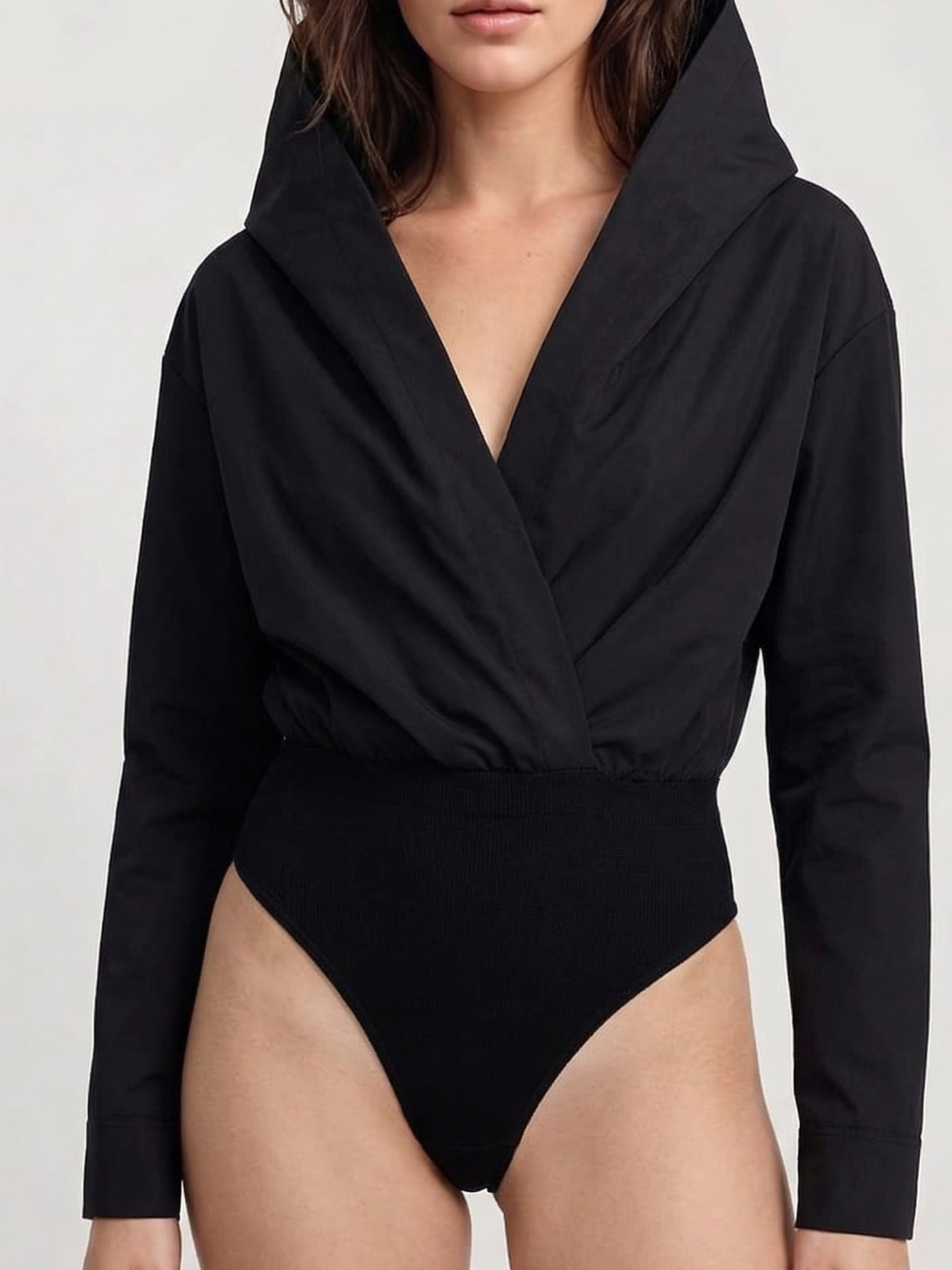 Боди Alaïa — стильный элемент гардероба, выполненный из высококачественного текстиля. Черный цвет делает его универсальным выбором, который легко сочетается с другими вещами. Материал боди — это комбинация мягкого хлопка и приятной на ощупь вискозы, что обеспечивает комфорт при носке. Классическая модель с капюшоном дополнена элегантными деталями: длинными рукавами с ребристой отделкой и удобным кроем, позволяющим свободно двигаться.