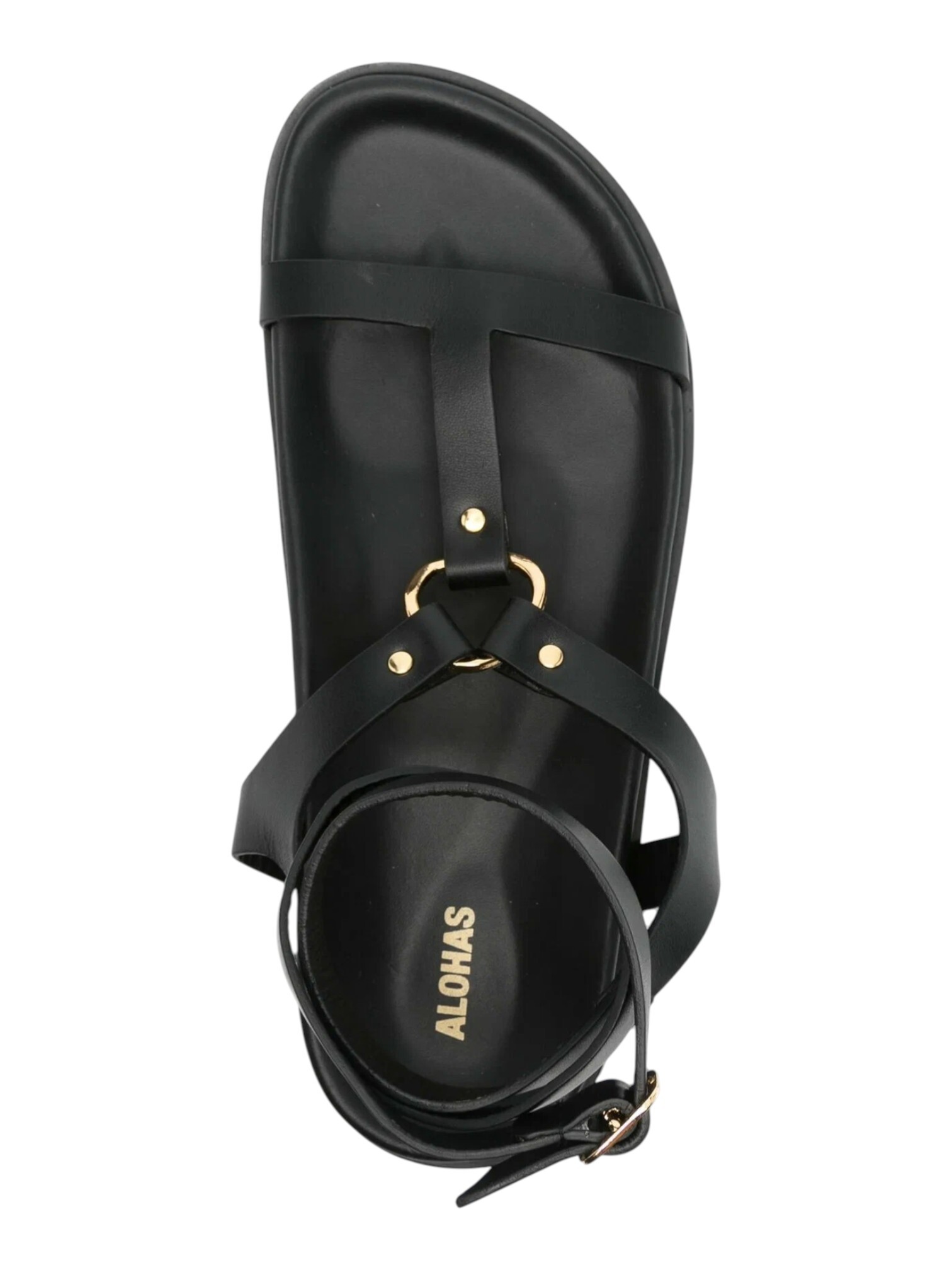 Босоножки Alohas - выполнены из натуральной кожи, которая обеспечивает мягкость и долговечность. Ремешок на щиколотке с изящной пряжкой позволяет регулировать посадку, создавая удобную и надежную фиксацию. Резиновая подошва гарантирует легкость и комфорт при ходьбе, а кожаная стелька с логотипом бренда добавляет ноту премиальности. Дополненные металлическими кольцами, босоножки приобретают современный и стильный вид. Идеальный выбор для создания летних образов – от повседневных прогулок до вечерних выходов. Эти босоножки подчеркнут ваш безупречный вкус и любовь к качественной обуви.