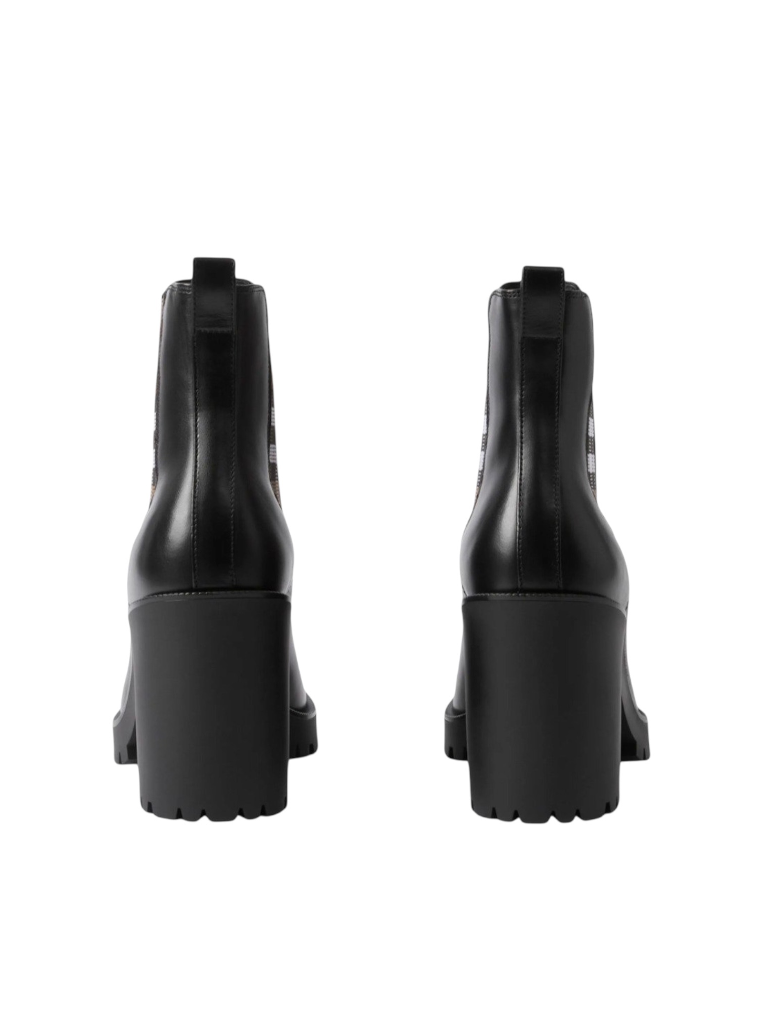 Челси Burberry - в черном цвете с клетчатыми панелями. Изготовлены из мягкой и прочной кожи, украшены эластичными сторонами для комфортной носки. Язычок на пятке и круглый носок подчеркивают классический дизайн, а блочный каблук обеспечивает устойчивость и изящность. Безупречный баланс элегантности, комфорта и технологичного дизайна.