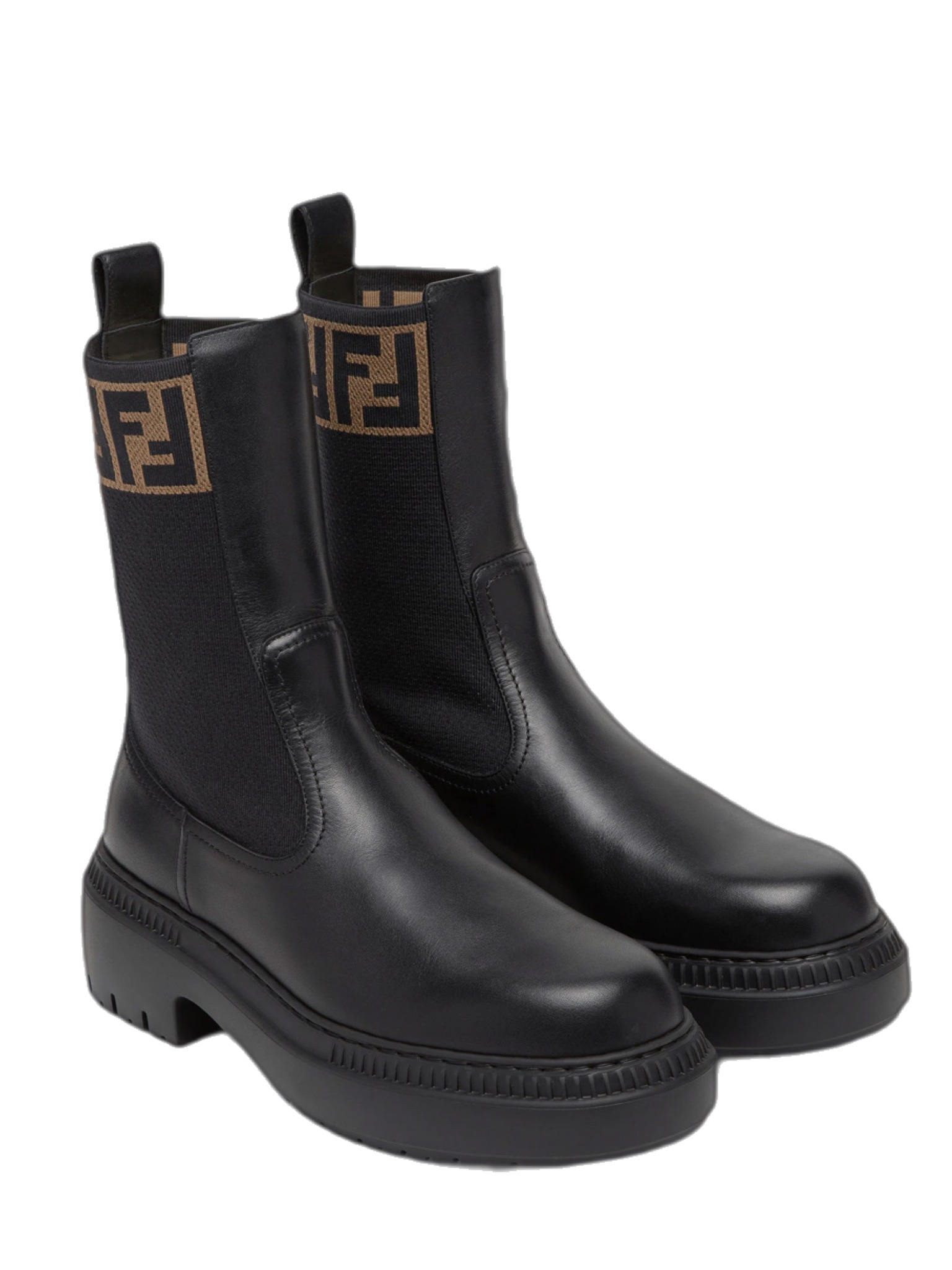 Ботинки Fendi - выполнена из натуральной телячьей кожи черного цвета, что обеспечивает долговечность и элегантный внешний вид. Круглый носок и эластичные вставки добавляют комфорт при движении. Подошва изготовлена из каучука, который обладает высокой стойкостью к истиранию. Внутри также используется качественная телячья кожа для дополнительного удобства. Надпись FF украшает верхнюю часть голенища, подчеркивая брендовость обуви.