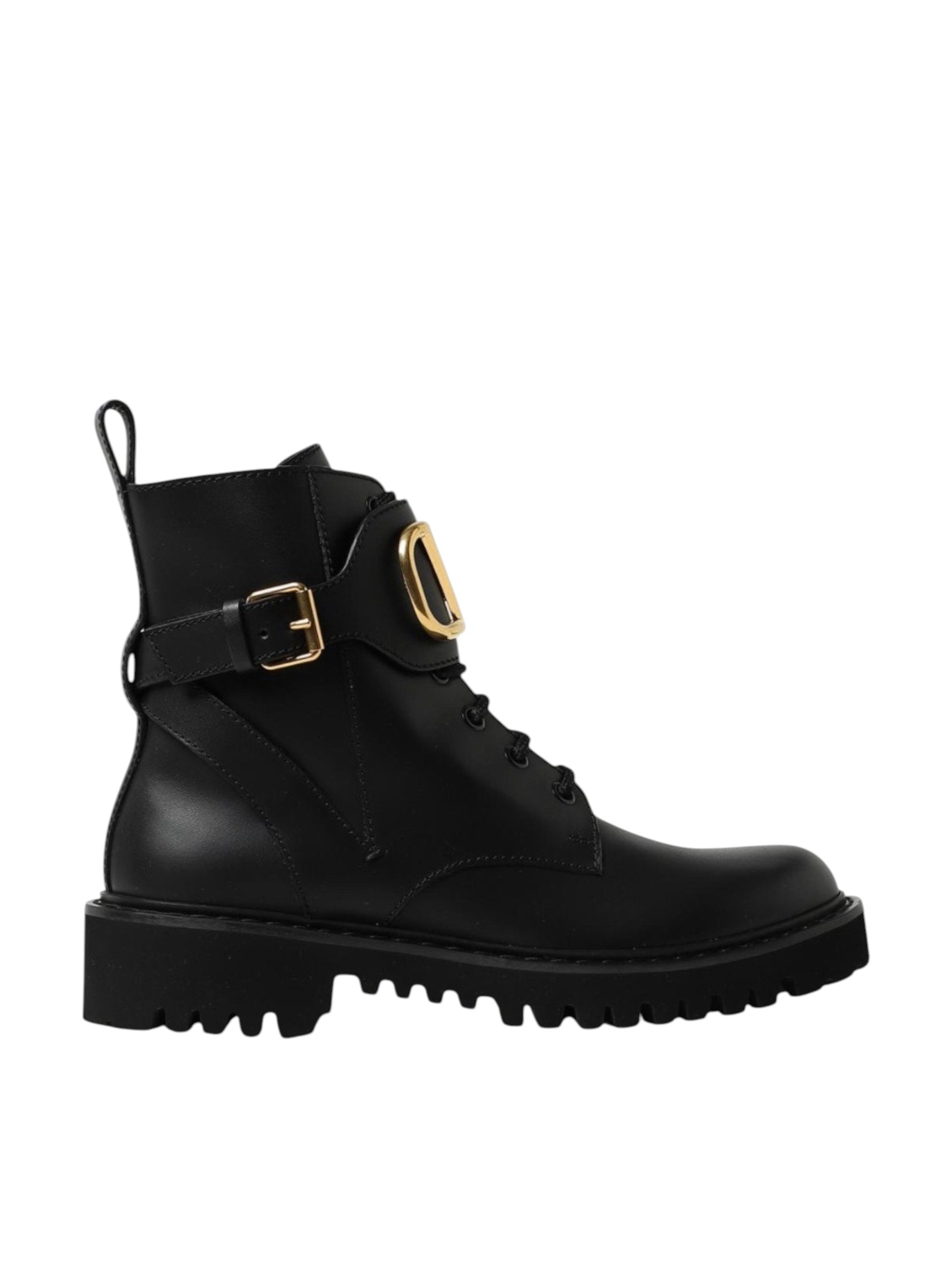 Ботинки Valentino Garavani - выполнены в современном и выразительном стиле. Модель оснащена шнуровкой, которая обеспечивает надежную посадку, а центральная пряжка, выполненная в виде логотипа бренда, добавляют роскоши и узнаваемости. Обувь имеет широкую подошву с глубоким протектором, что обеспечивает отличное сцепление и устойчивость. Эти ботинки отлично подходят для создания ярких, стильных образов с элементами дерзости и шика, подчеркнув индивидуальность и статус владельца. Высококачественная кожа и продуманный дизайн делают их не только эффектным элементом гардероба, но и практичным выбором.