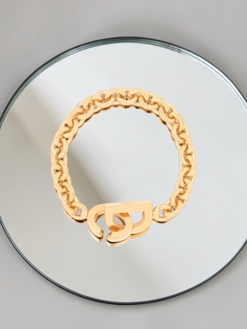 Браслет Christian Dior выполнен из позолоченного металла, что придает ему элегантный вид и долговечность. Аксессуар украшен логотипом бренда - буквой "D" в круге. Он станет прекрасным дополнением к вашему образу и подчеркнет ваш стиль и утонченность.