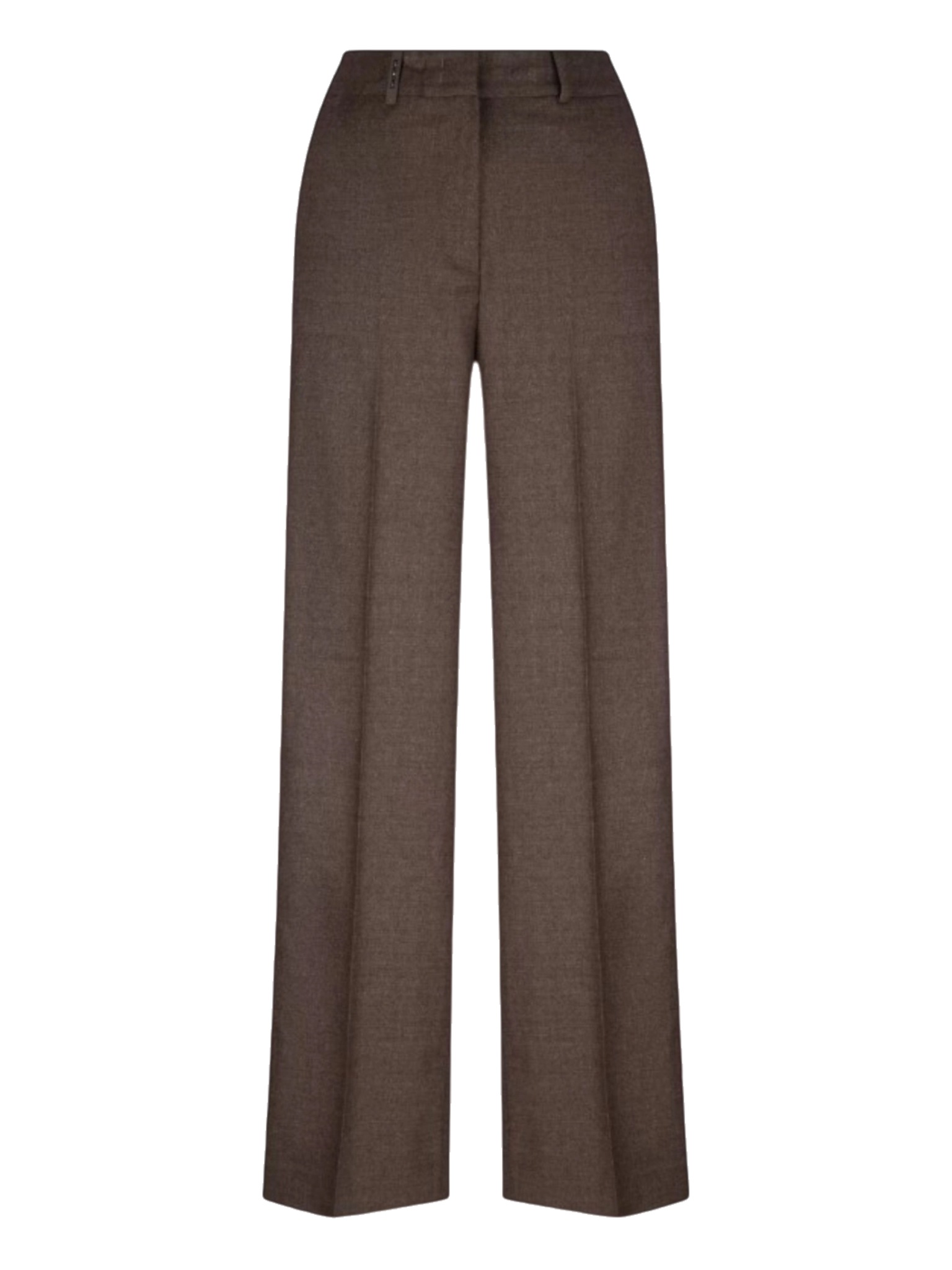 Брюки Peserico - в тёплом коричневом оттенке выполнены в классическом стиле с высокой посадкой. Модель отличается прямым свободным кроем и чётко обозначенными стрелками, которые визуально вытягивают силуэт. Изделие дополнено застёжкой на молнию и крючок, а также шлёвками для ремня. Брюки идеально подойдут для деловых образов и изысканных повседневных сочетаний, подчёркивая утончённый вкус и итальянское чувство стиля.