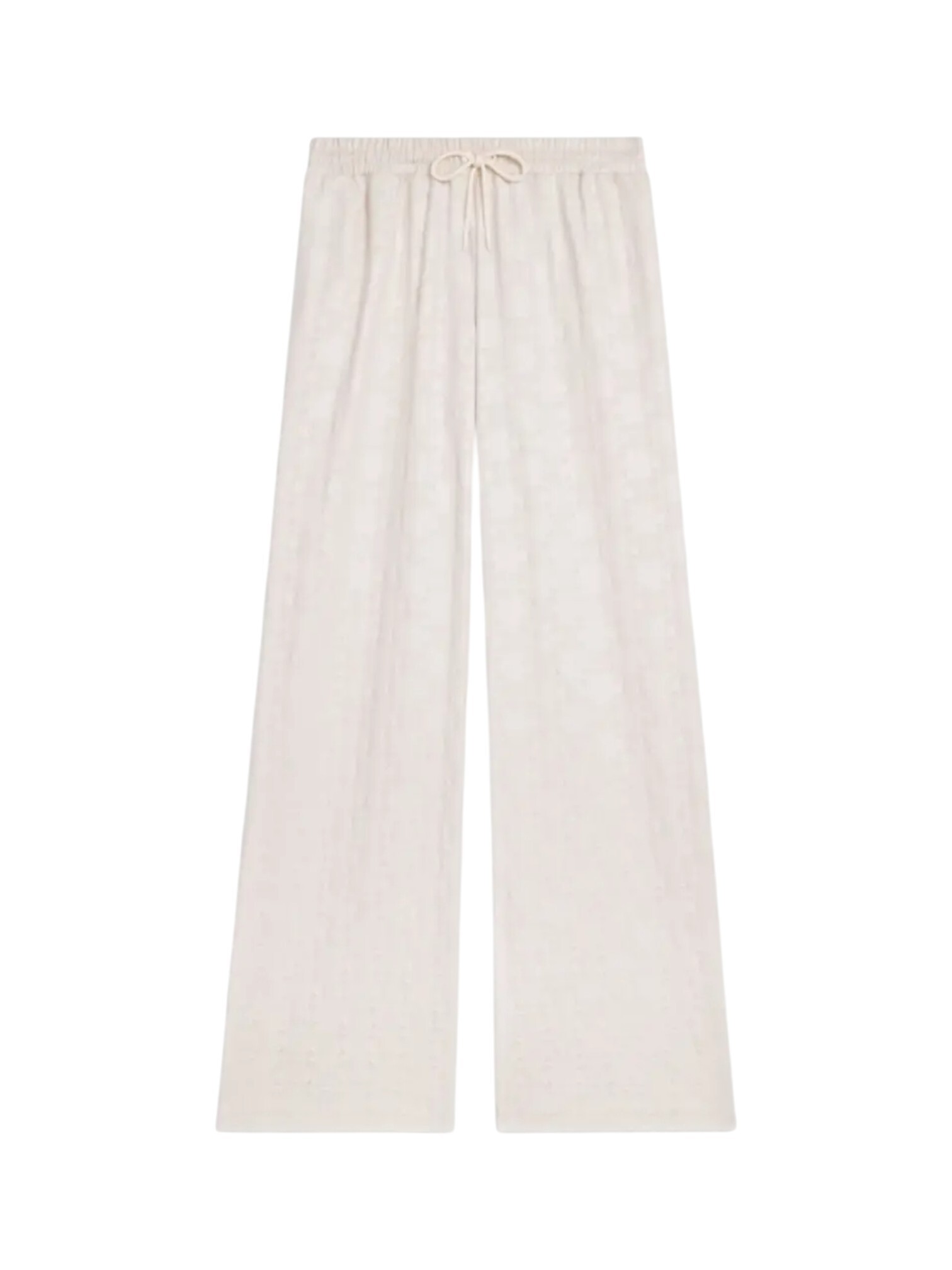 Брюки спортивные Celine - переосмысливают концепцию комфорта, поднимая ее до уровня высокой моды. Модель молочного цвета с широким кроем и застежкой на резинке сочетает в себе ультрасовременный силуэт и непревзойденное качество, характерное для парижского Дома. Брюки сшиты из высококачественных материалов, что обеспечивает тактильную мягкость, долговечность и безупречный вид.