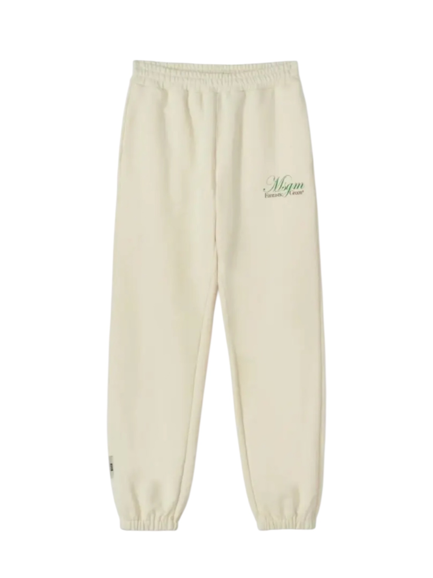 Брюки спортивные MSGM Эти молочные спортивные брюки из капсульной коллекции Fantastic Green – воплощение комфорта и стиля. Они выполнены из мягкого эластичного трикотажа на основе органического хлопка, который обеспечивает приятные тактильные ощущения и комфортный микроклимат. Продуманный крой дарит полную свободу движений, а функциональные карманы добавляют практичности. Широкий пояс, логотип марки и название коллекции подчеркивают принадлежность к лимитированной серии.