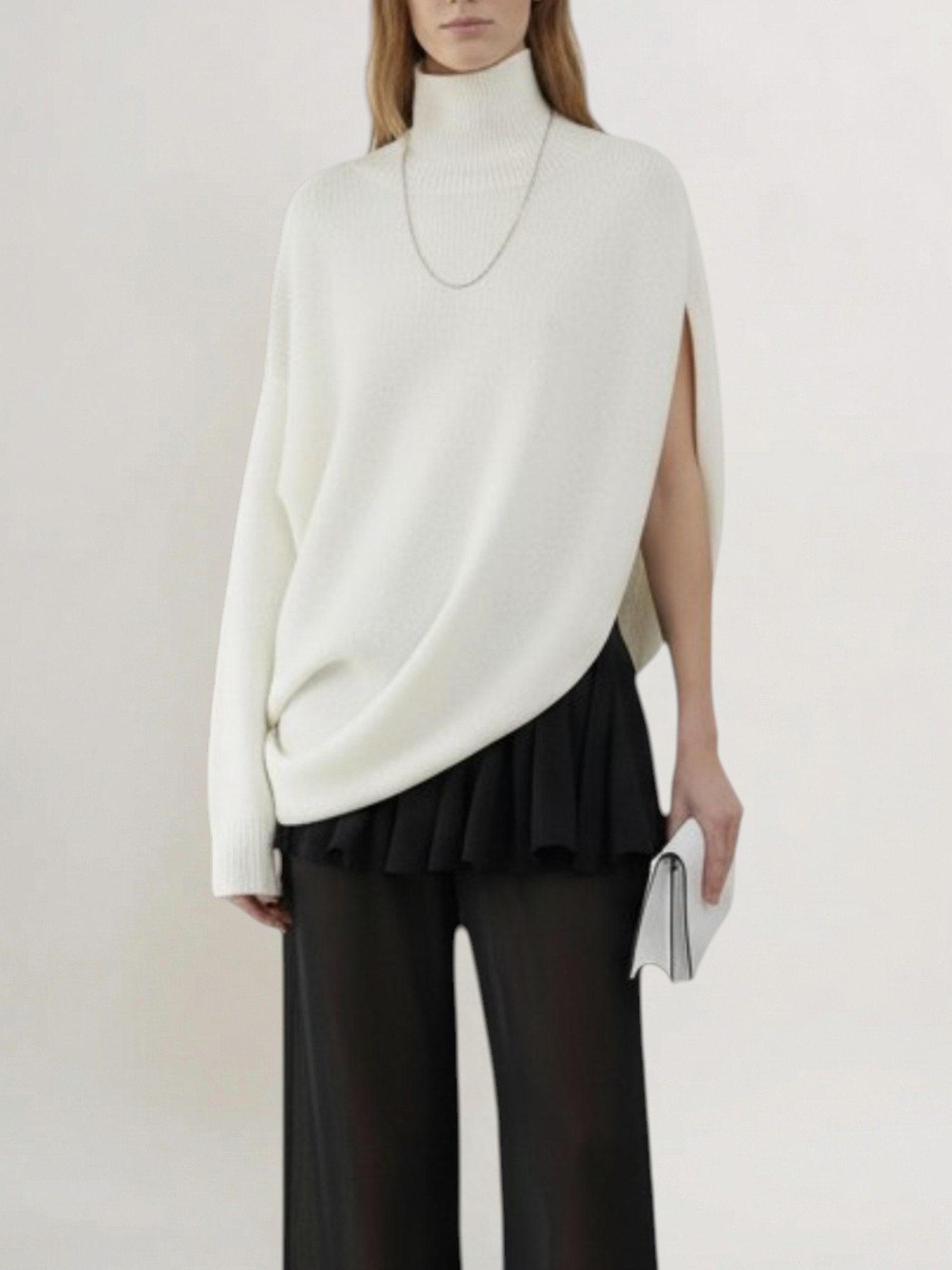 Джемпер Alaïa - скульптурное воплощение фирменного почерка бренда, где каждая линия кроя становится произведением искусства. Модель из 100% шерсти премиального качества переосмысливает традиционную вязку через призму авангардного дизайна. Двойная структура – длинный одинарный рукав и драпированная накидка как элемент безупречного-кроя. Для тех, кто носит архитектуру.