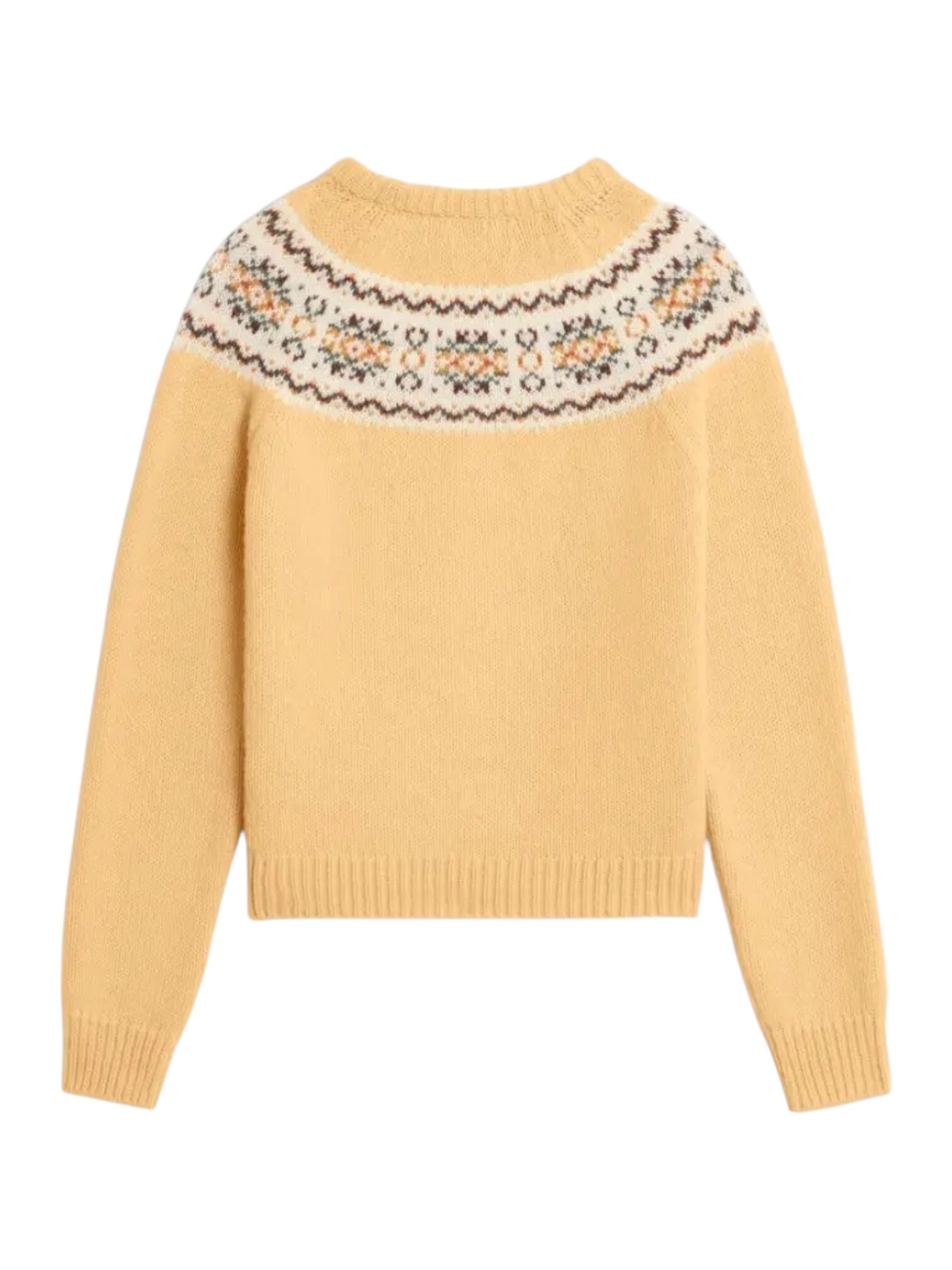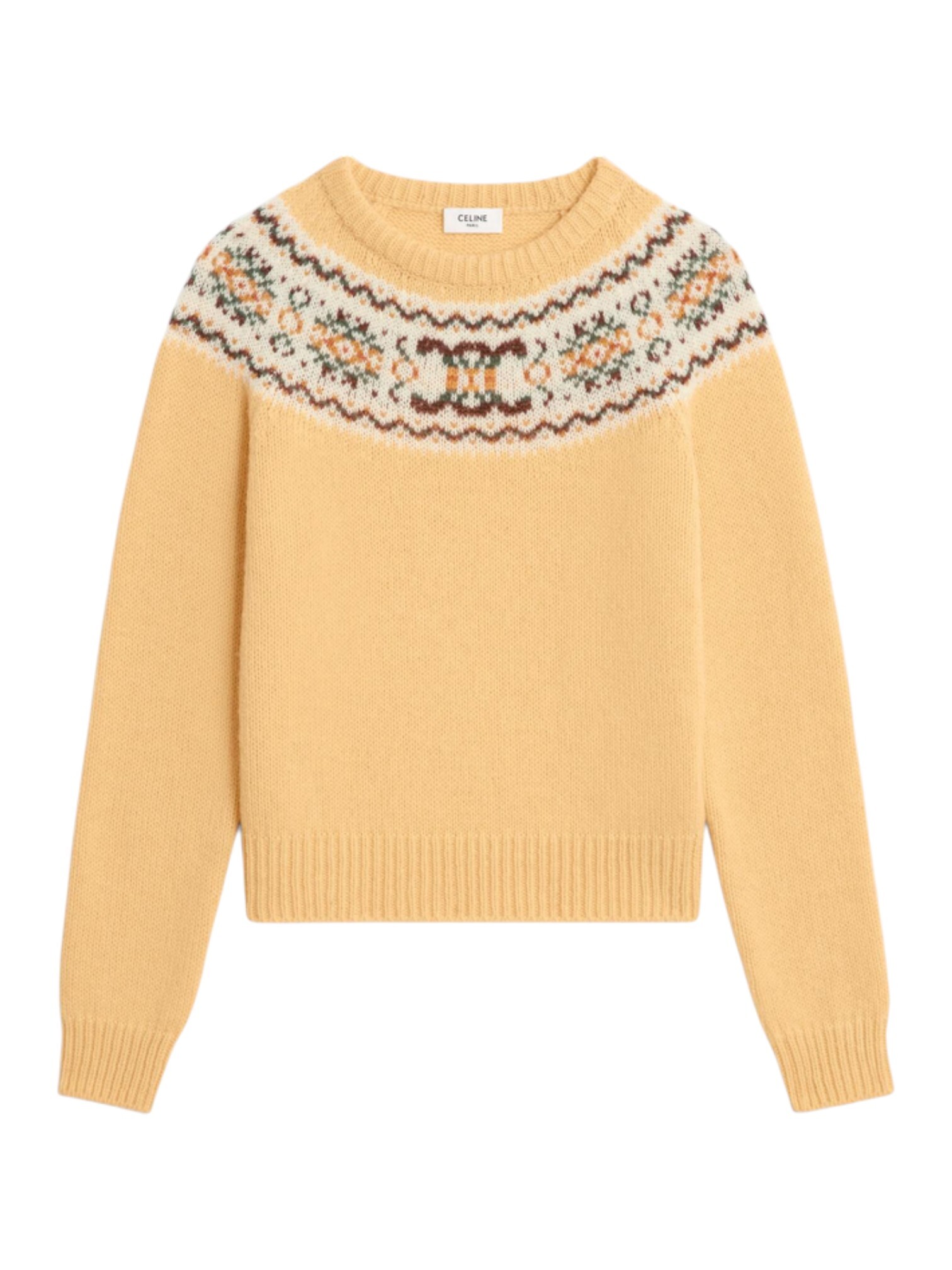 Джемпер Celine - выполненный из 100% шерсти в насыщенном желтом цвете. Модель сочетает в себе традиционное мастерство и современный дизайн. Уникальный узор ручной вязки подчеркивает исключительное внимание к деталям и премиальное качество исполнения. Классический круглый вырез и длинные рукава обеспечивают универсальность и комфорт. Яркий солнечный оттенок добавляет образу энергии и стильной смелости, делая этот джемпер акцентным элементом гардероба.