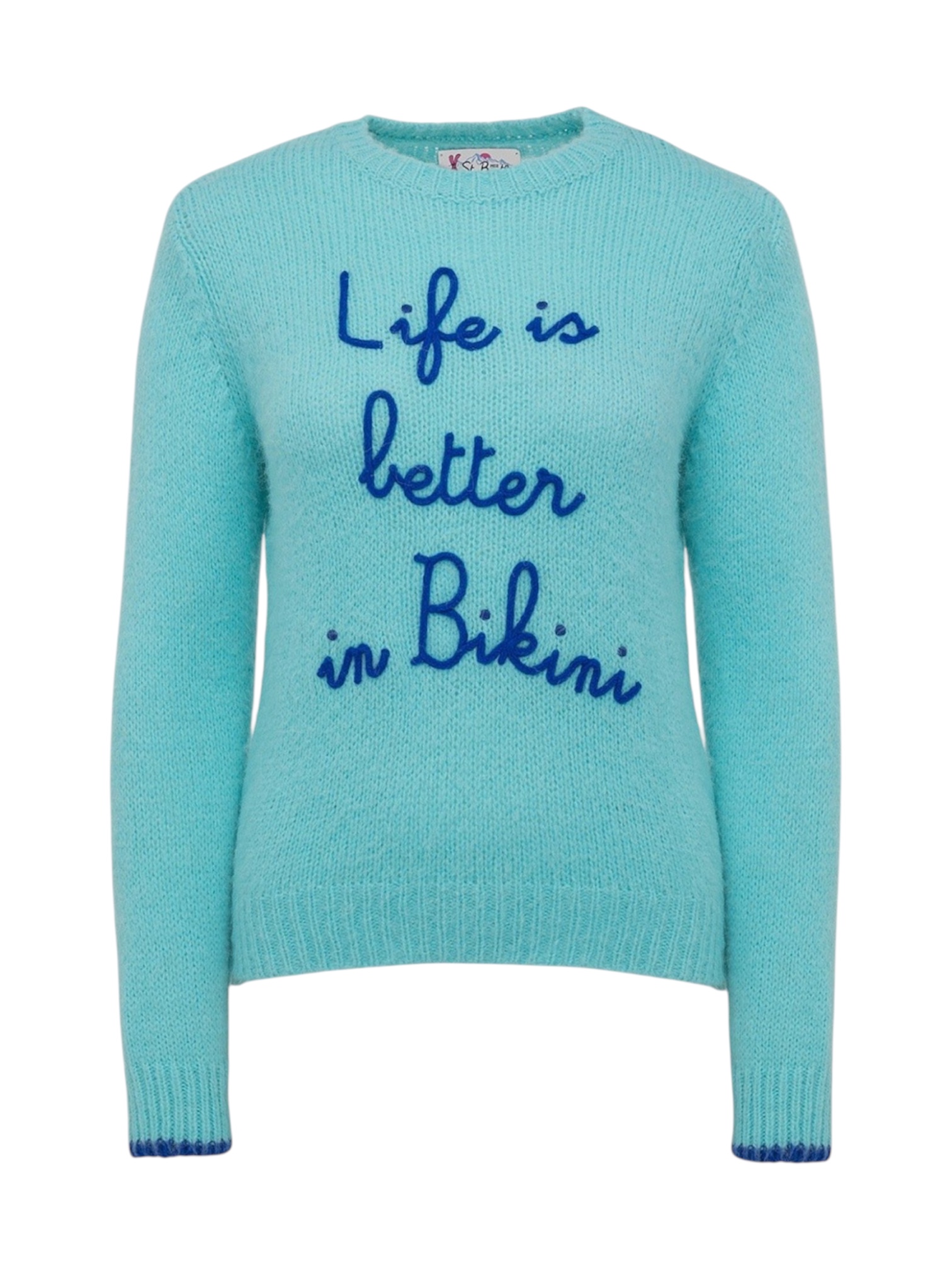 Джемпер MC2 Saint barth - это мгновенный билет в лето, даже в самый хмурый день. Модель заряжена энергией тропиков благодаря ироничной вышивке «Life is better in Bikini» - фирменному слогану бренда, напоминающему о беспечности пляжного рая. Идеальный акцент для оживления повседневных образов. Насыщенный бирюзовый - свежий, летний, притягивает взгляды. Это не просто свитер, а напоминание: жизнь действительно лучше в бикини