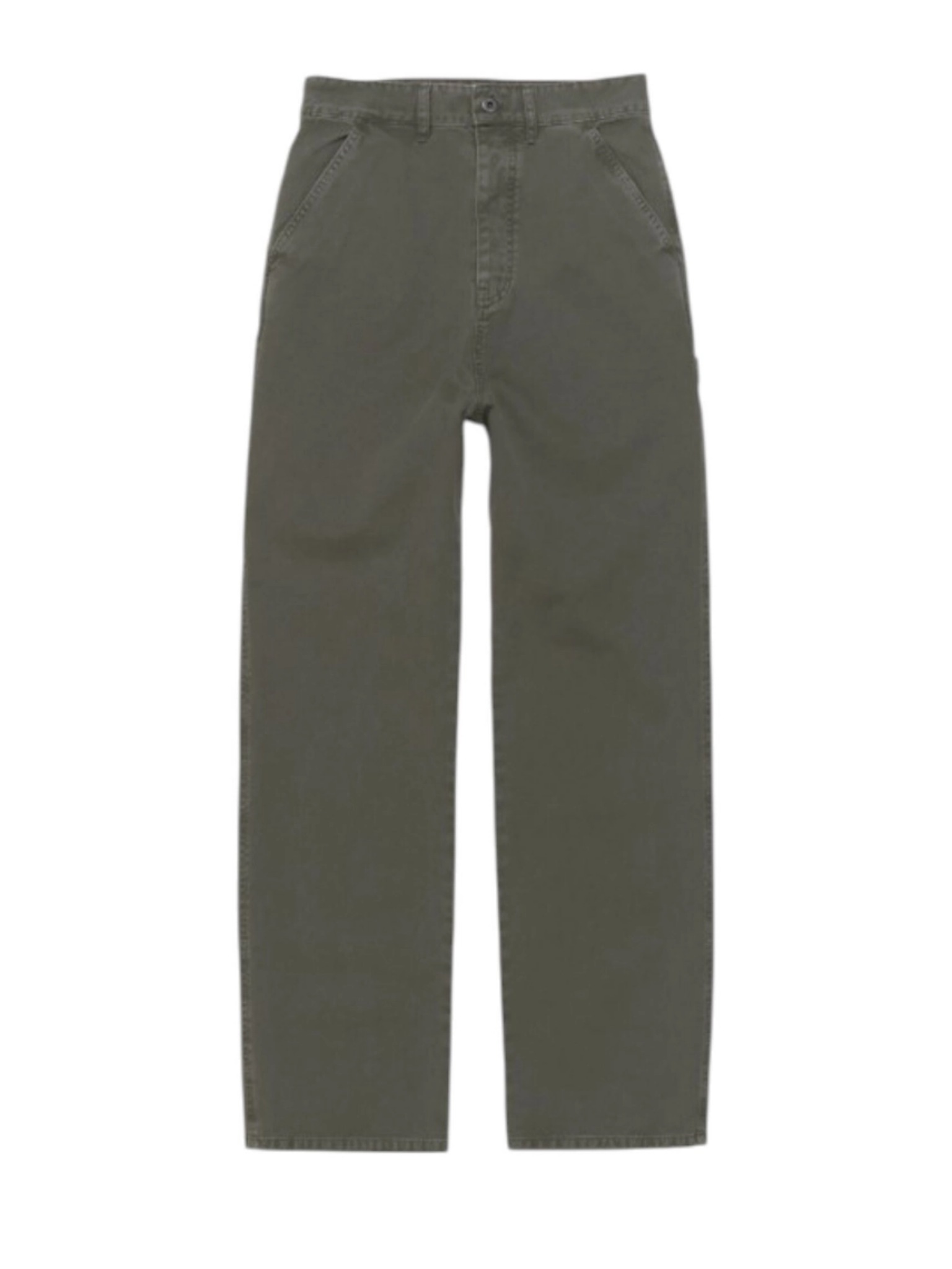 Джинсы Miu Miu - выполнены из плотного хлопкового твила в универсальном оттенке хаки. Модель отличается лаконичным дизайном с наклонными боковыми карманами, шлёвками для ремня и классической застёжкой на молнию с пуговицей. Свободный крой и минималистичный стиль делают эти брюки идеальной базой для повседневных образов в стиле casual или smart-casual.