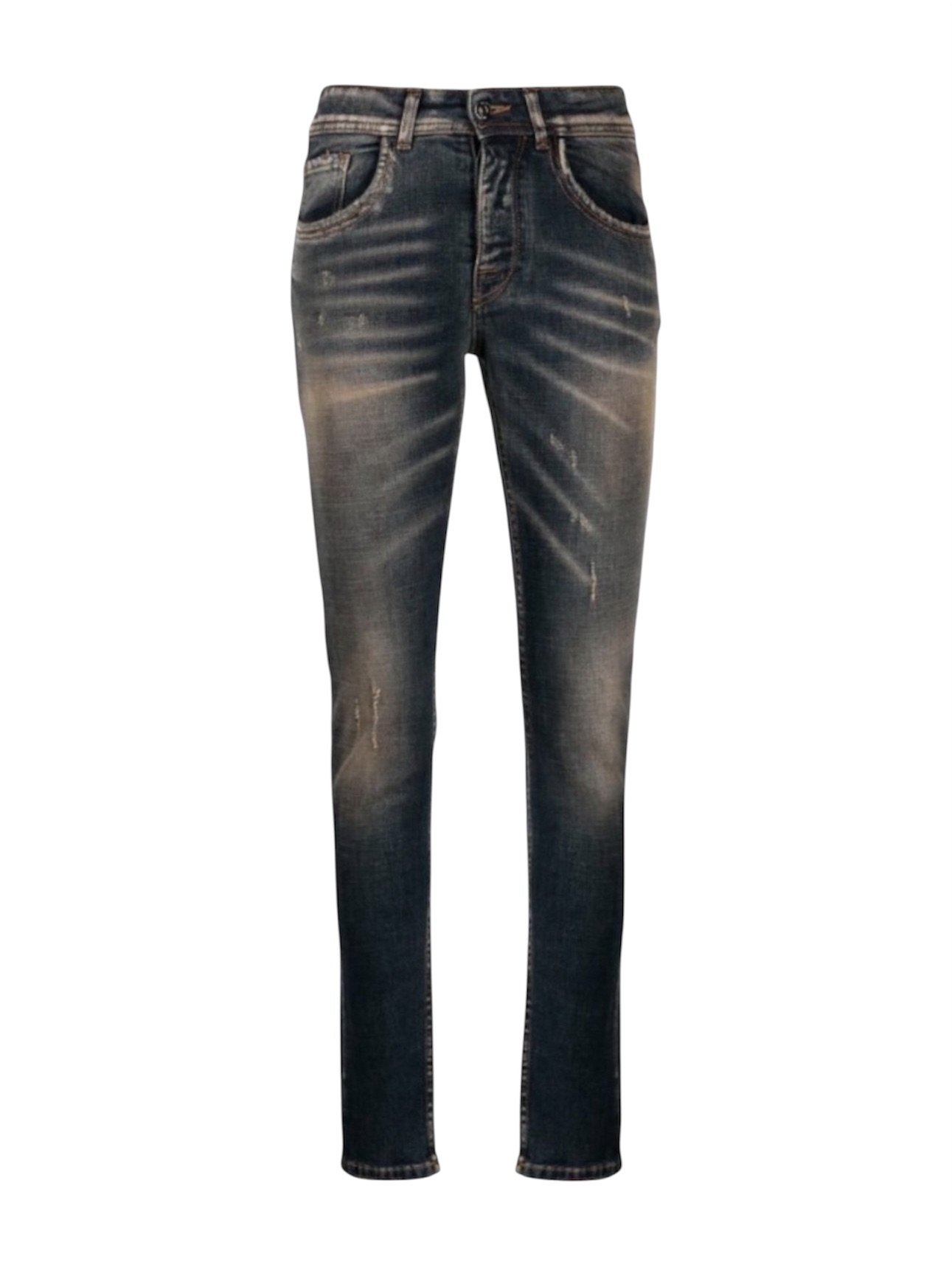 Джинсы N°21 - выполнены в стильном голубом цвете. Сшитые из 100% плотного хлопка премиум-качества, они сочетают дерзкий дух улиц с безупречным кроем, характерным для бренда. Декоративные потертости и потертые эффекты - не дефект, а продуманный жест деконструкции. Это визуальная поэзия, рассказывающая историю воображаемых приключений, - фирменный почерк бренда, бросающий вызов традиционной «идеальности». Они - для тех, кто видит красоту в асимметрии, поэзию в небрежности и роскошь в свободе движений, которую дарит идеальный крой N°21.