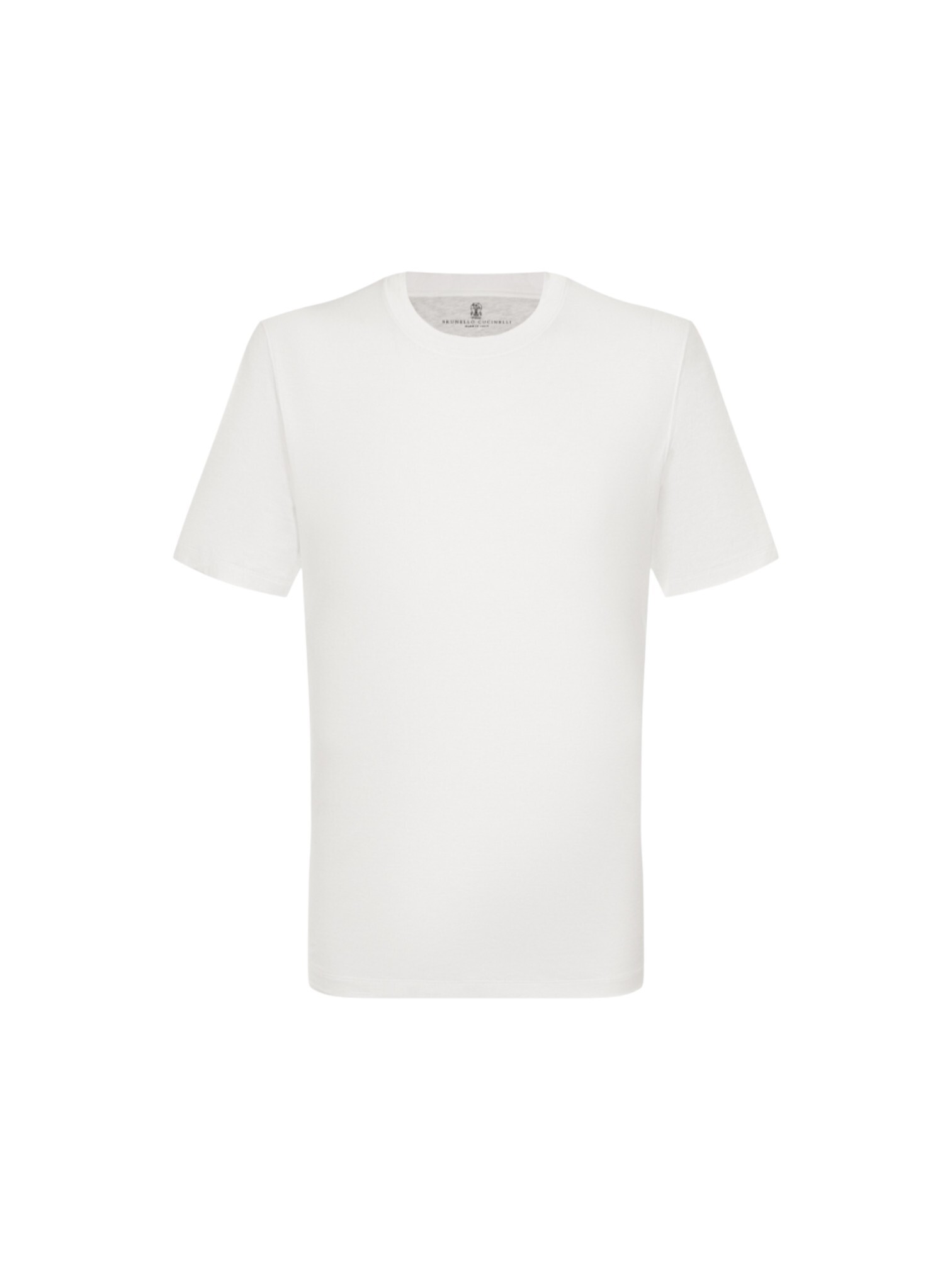 Футболка Brunello Cucinelli - олицетворяющая современную роскошь в ее самой изысканной и непринужденной форме. Модель выполнена из невероятно мягкого хлопкового джерси белого цвета, что гарантирует исключительный комфорт. Дизайн дополнен классическим круглым вырезом и короткими рукавами. Завершает образ элегантная деталь - прямой подол, подчеркивающий безупречное качество отделки. Это инвестиция в безупречный стиль на каждый день.
