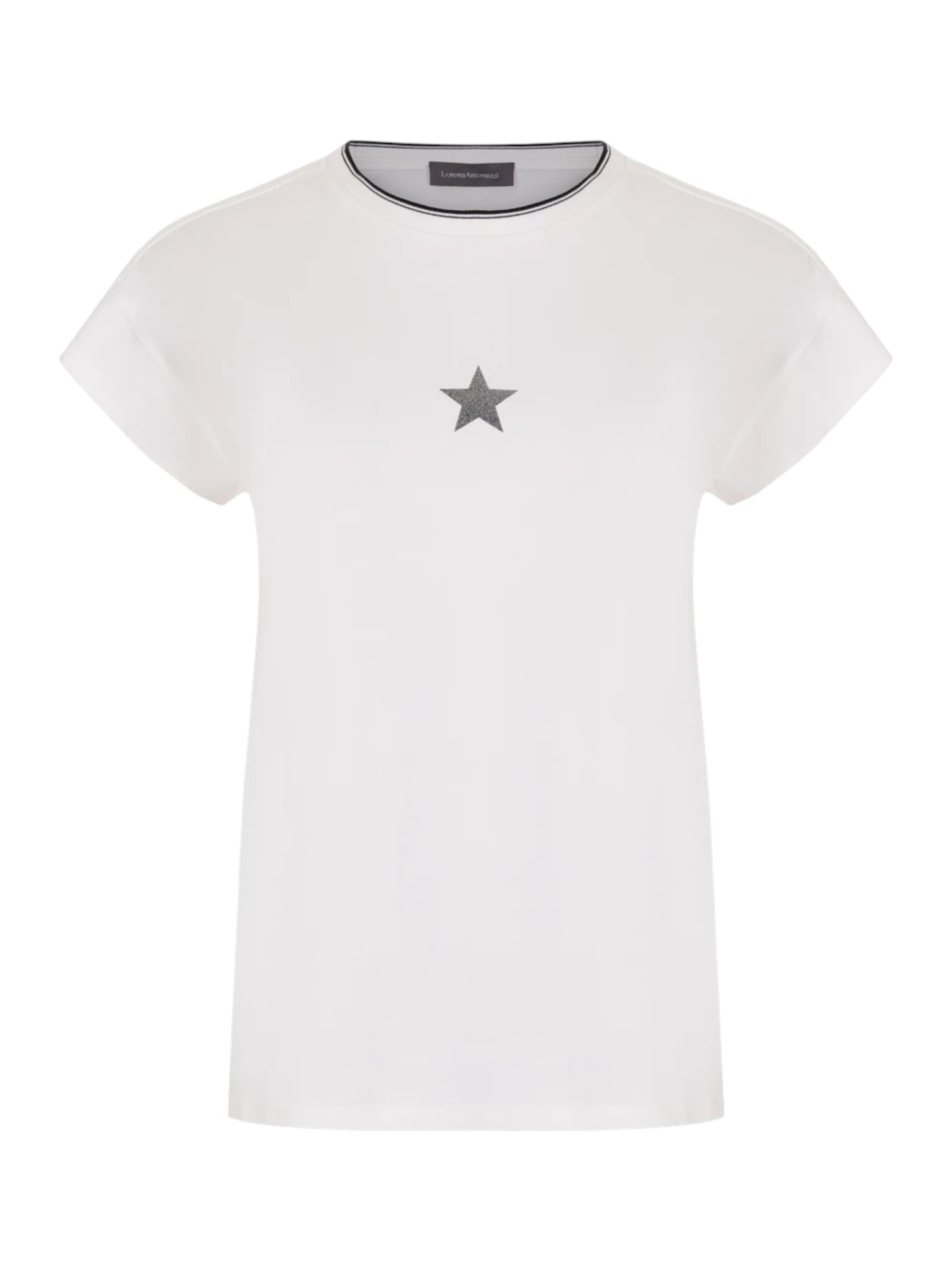 Футболка Lorena Antoniazzi - воплощает идеальный баланс между простотой и выразительностью. Прямой крой, короткие рукава и круглый вырез создают универсальную основу, а фирменная звезда на груди добавляет сдержанный, но узнаваемый акцент. Идеальный выбор для прогулок, путешествий, офиса в формате кэжуал и повседневной носки. Легко сочетается с джинсами, брюками, шортами и юбками.