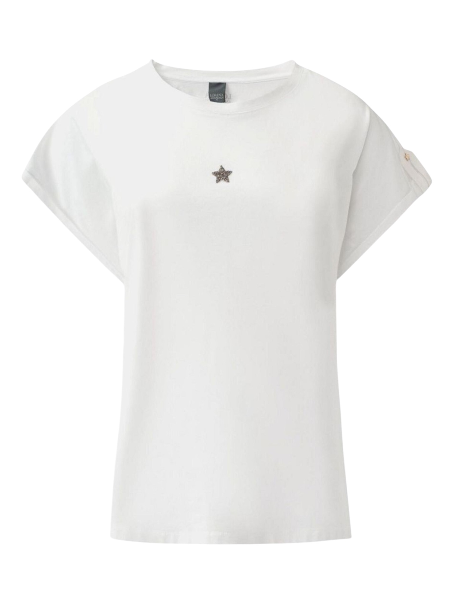 Футболка Lorena Antoniazzi - сочетающая в себе уличный шик и брендовую детализацию. Модель выполнена из высококачественного хлопка, что обеспечивает комфорт и долговечность носки. Принт в виде звезды по центру и декоративные заклепки на рукавах создают узнаваемый образ, подчеркивающий индивидуальность и внимание к деталям. Идеально для: прогулок, концертов, встреч с друзьями и мероприятий, где важны самовыражение и современная эстетика с роскошными деталями.