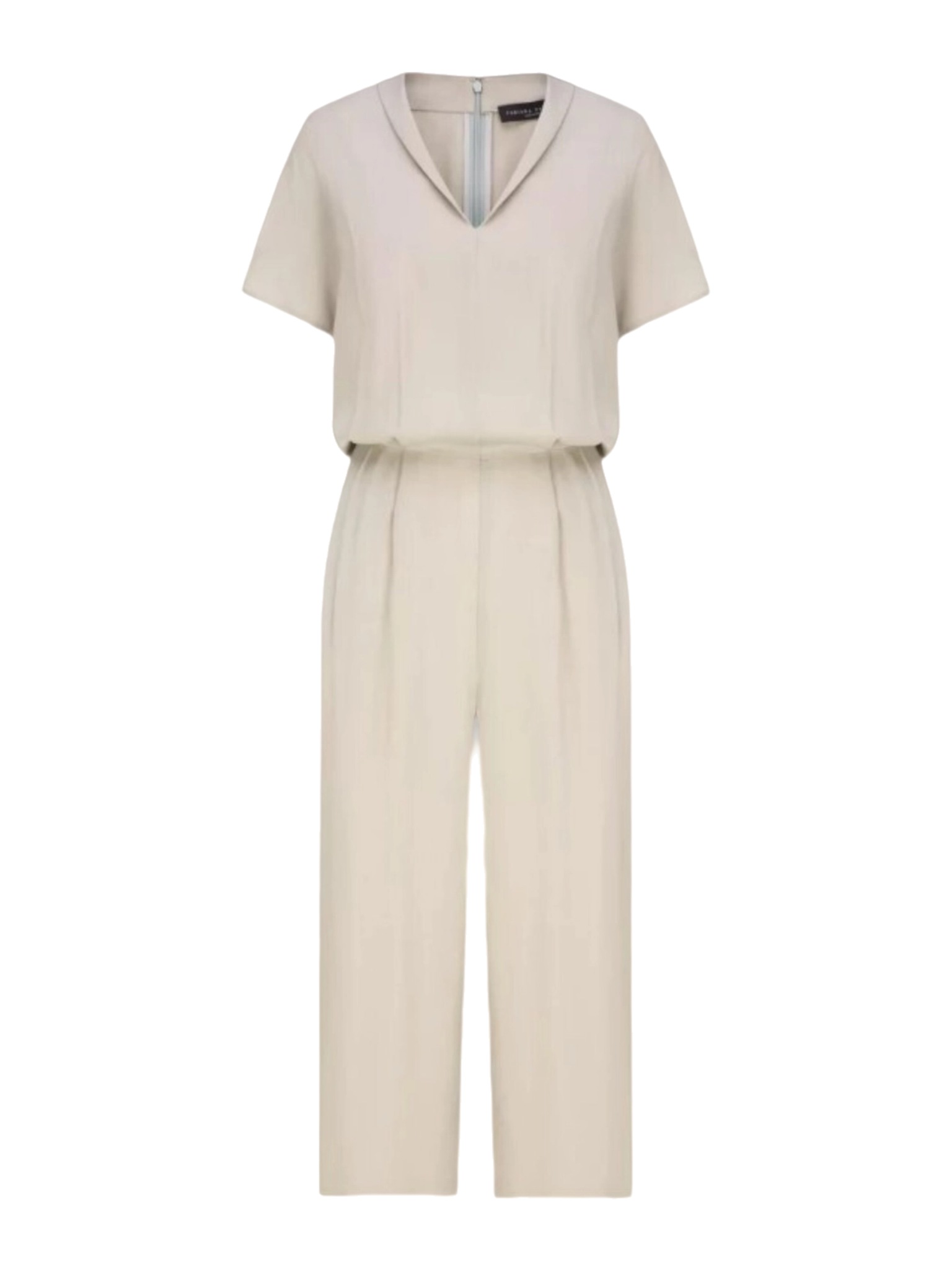 Комбинезон Fabiana Filippi - сочетает в себе элегантность и комфорт. Выполненный в мягком, нейтральном оттенке, он излучает сдержанный шик. Верхняя часть с короткими рукавами и V-образным вырезом переходит в широкие брюки со складками, создавая свободный и непринужденный силуэт. Застежку на спине обеспечивает аккуратная молния. Комбинезон прекрасно подойдет для создания как повседневного, так и более формального образа, в зависимости от выбранных аксессуаров. Это идеальный выбор для тех, кто ценит минимализм и высокое качество.