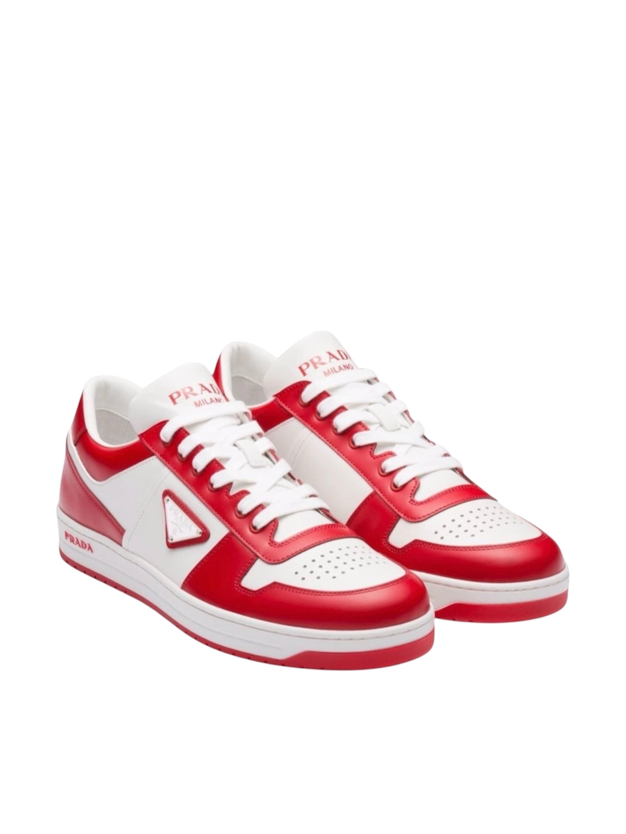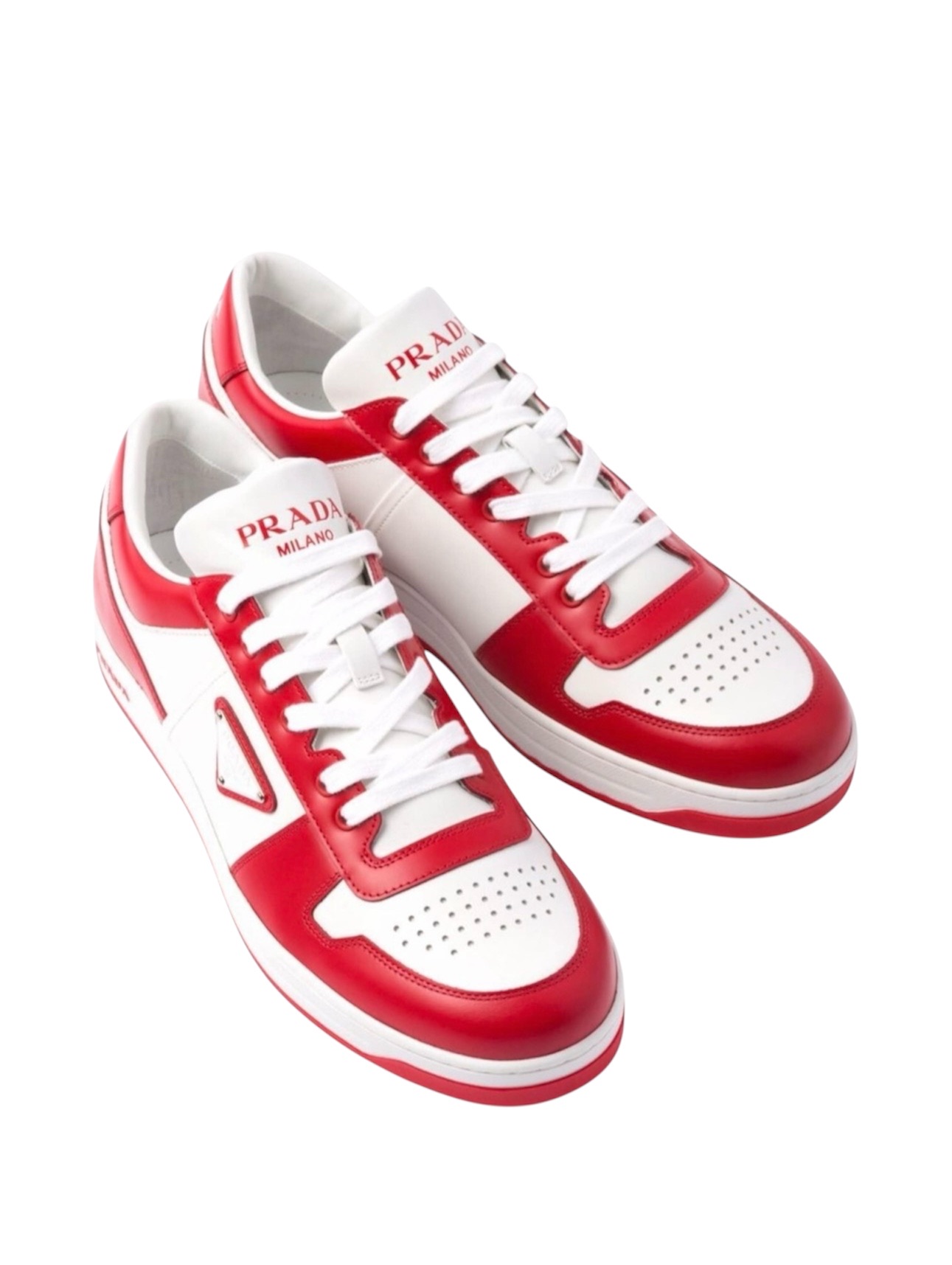 Кроссовки Prada - сочетающие в себе динамичный красно-белый дизайн и культовые элементы бренда. Модель выполнена из высококачественной кожи с контрастными панелями, создающими визуальную глубину. Эмалевый логотип-треугольник и перфорированные детали подчеркивают наследие бренда, а нашивка с логотипом на язычке добавляет узнаваемости. Круглый носок и шнуровка спереди обеспечивают комфорт и идеальную посадку. Фирменная стелька и накладка на пятке завершают премиальный образ, а плоская резиновая подошва гарантирует устойчивость. Идеально для: городских прогулок, путешествий и повседневной носки, где важны смелый стиль, качество и наследие Prada.