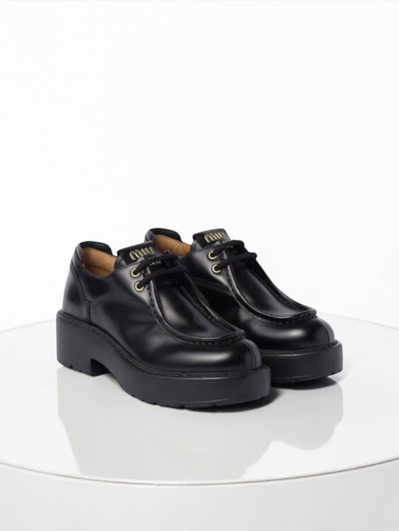 Полуботинки Miu Miu на шнуровке представляют собой интересное сочетание формального и повседневного стилей. Логотип Miu Miu на язычке служит стильным акцентом и подчеркивает брендовый характер изделия. Кожаная подкладка обеспечивает комфорт и долговечность, а застежка на шнуровке позволяет легко регулировать посадку. Подошва из ЭВА гарантирует легкость и амортизацию при ходьбе.