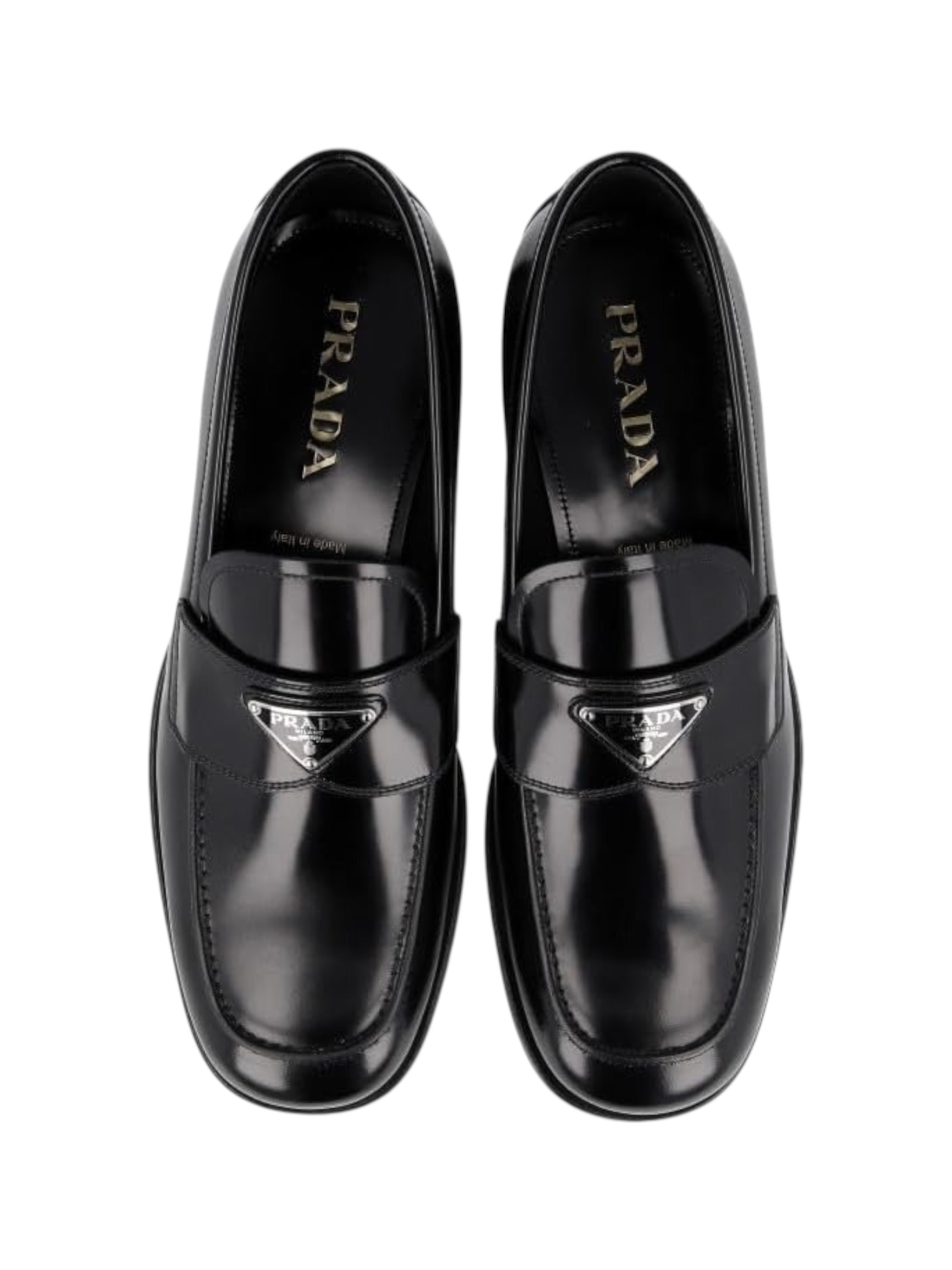 Лоферы Prada – это сочетание элегантности и комфорта. Изготовлены из высококачественной телячьей кожи, они идеально подойдут как для деловых встреч, так и для повседневного ношения. Тонкая резиновая подошва обеспечивает легкость и удобство при ходьбе, а металлический эмалевый логотип добавляет стилю завершенности.