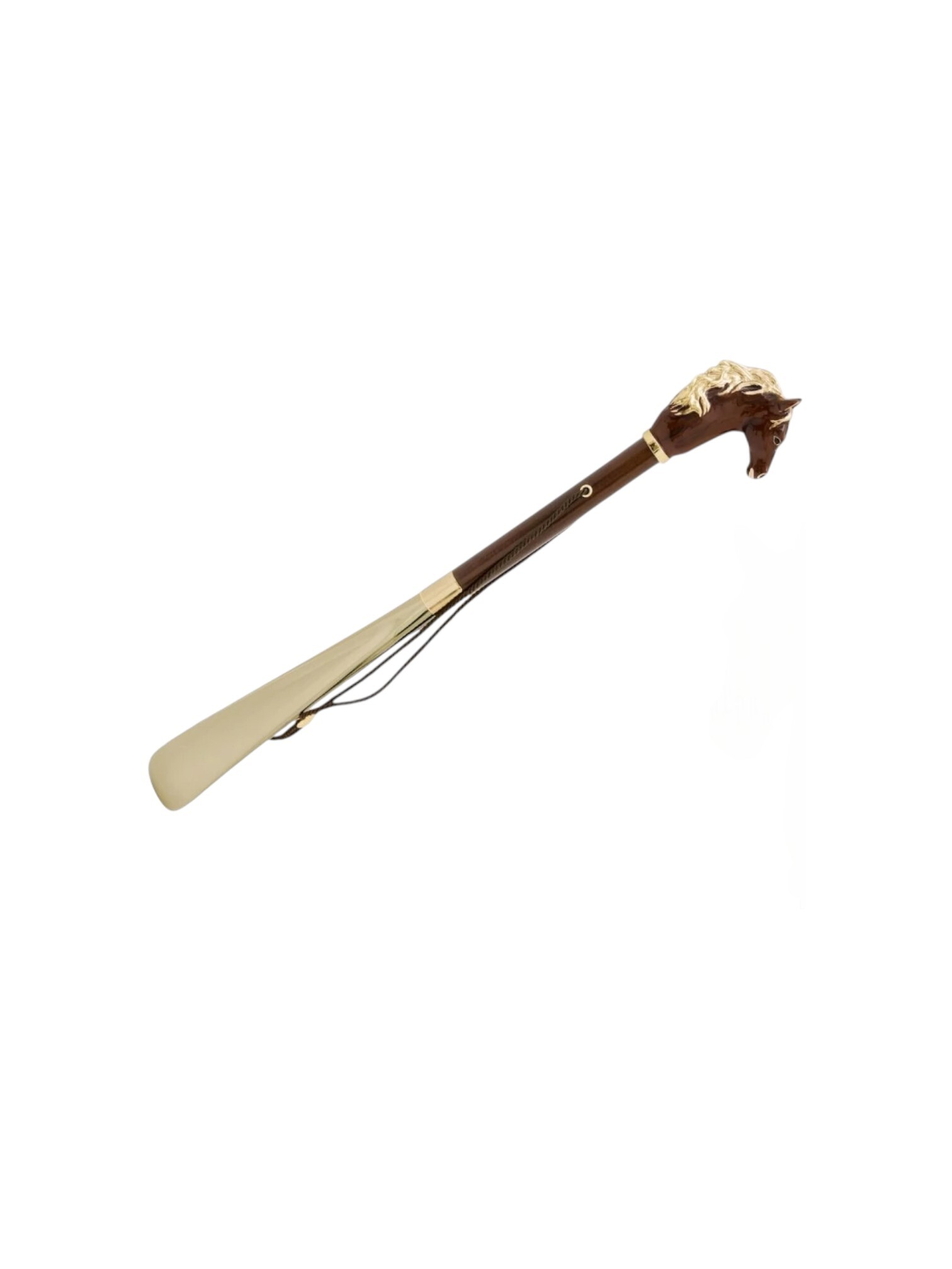 Ложка для обуви Pasotti - с дизайнерской латунной ручкой в виде благородной лошади воплощает в себе гармонию силы, грации и безупречного вкуса. Каждая линия скульптурного изображения скакуна - от изгиба шеи до динамики движения - искусно проработана мастерами, демонстрируя превосходное качество и внимание к деталям. Латунь, выбранная для исполнения, не только гарантирует долговечность и благородный блеск, но и дарит исключительные тактильные ощущения. При длине 50 см аксессуар обеспечивает комфорт, позволяя сохранить безупречный вид обуви и одежды.