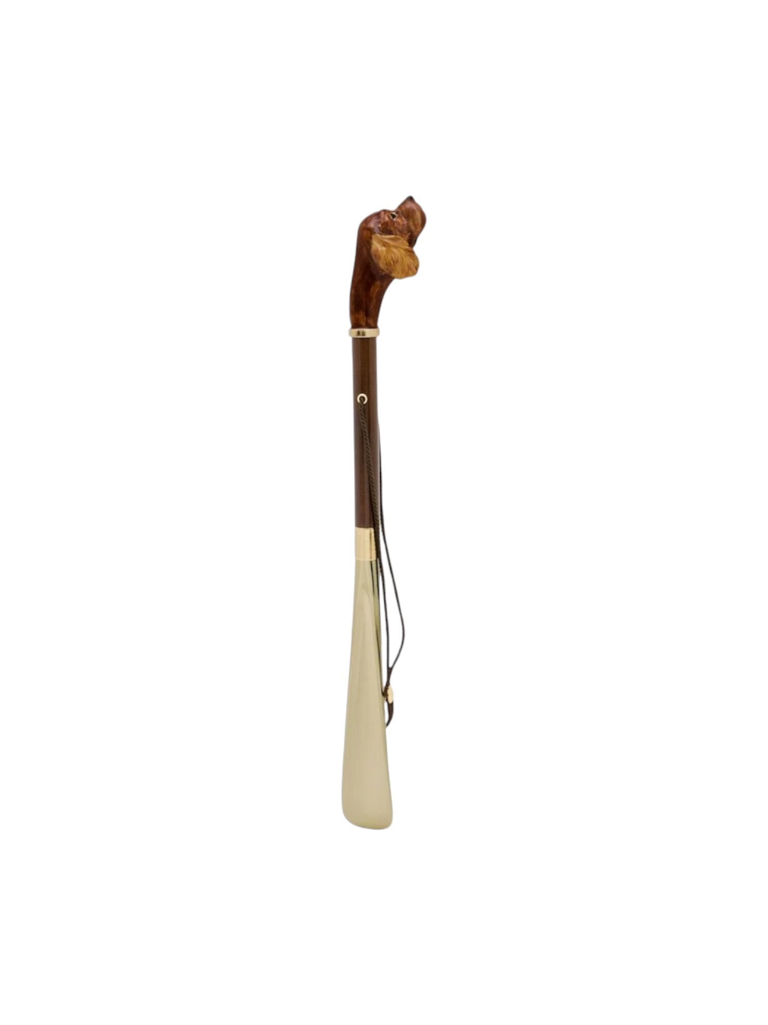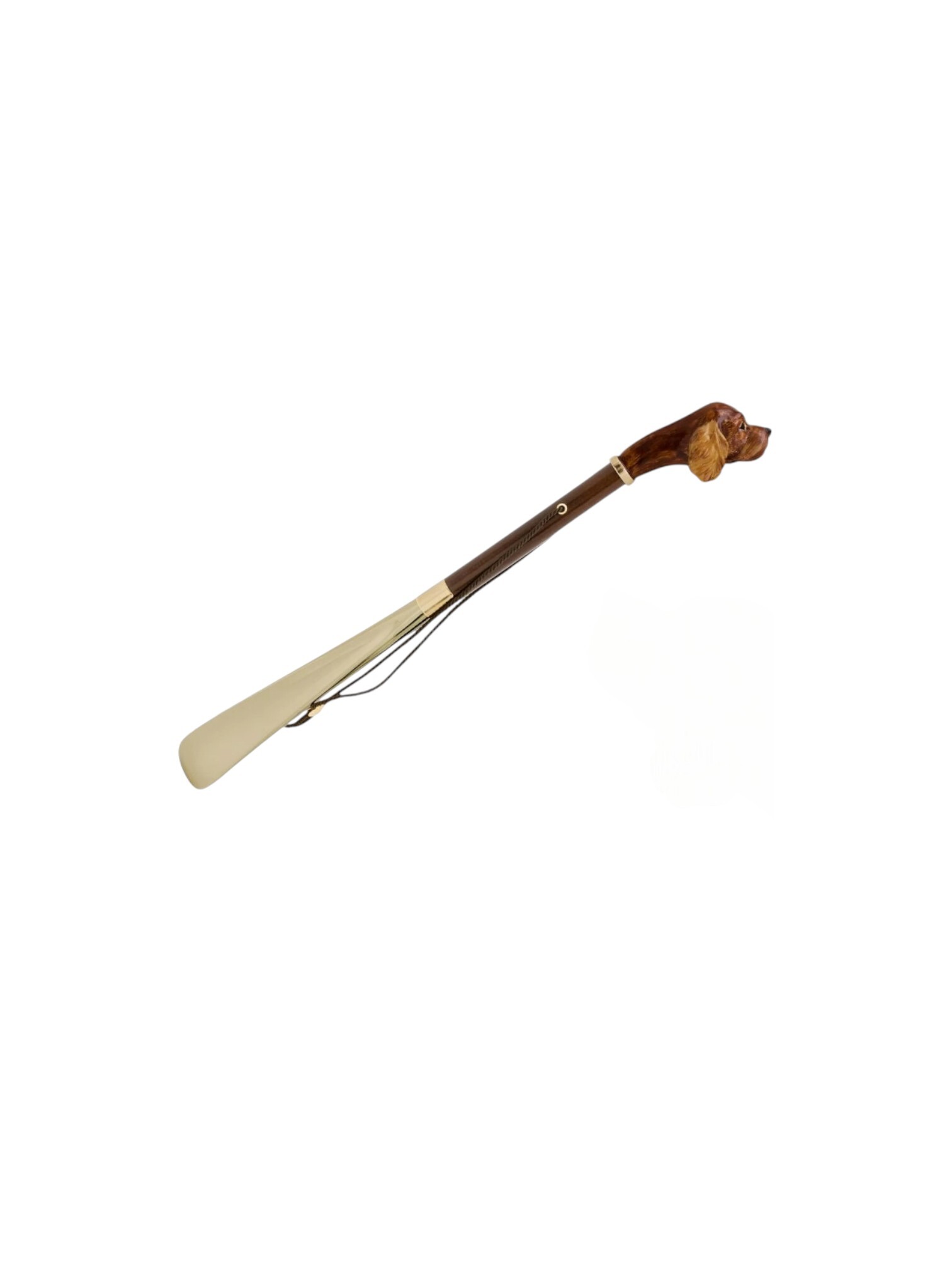 Ложка для обуви Pasotti - с дизайнерской латунной ручкой в виде кокер-спаниеля, покрытой эмалью, воплощает в себе элегантность, верность и безупречный вкус. Каждая деталь утонченной мордочки собаки - от выразительного взгляда до шелковистых ушей - искусно проработана и украшена цветной эмалью, что придает изделию особый шарм и реалистичность. Латунная основа гарантирует долговечность и благородный блеск, а ручная роспись эмалью демонстрирует высочайший уровень мастерства. При длине 50 см аксессуар обеспечивает максимальный комфорт, позволяя сохранить безупречный вид обуви и одежды.