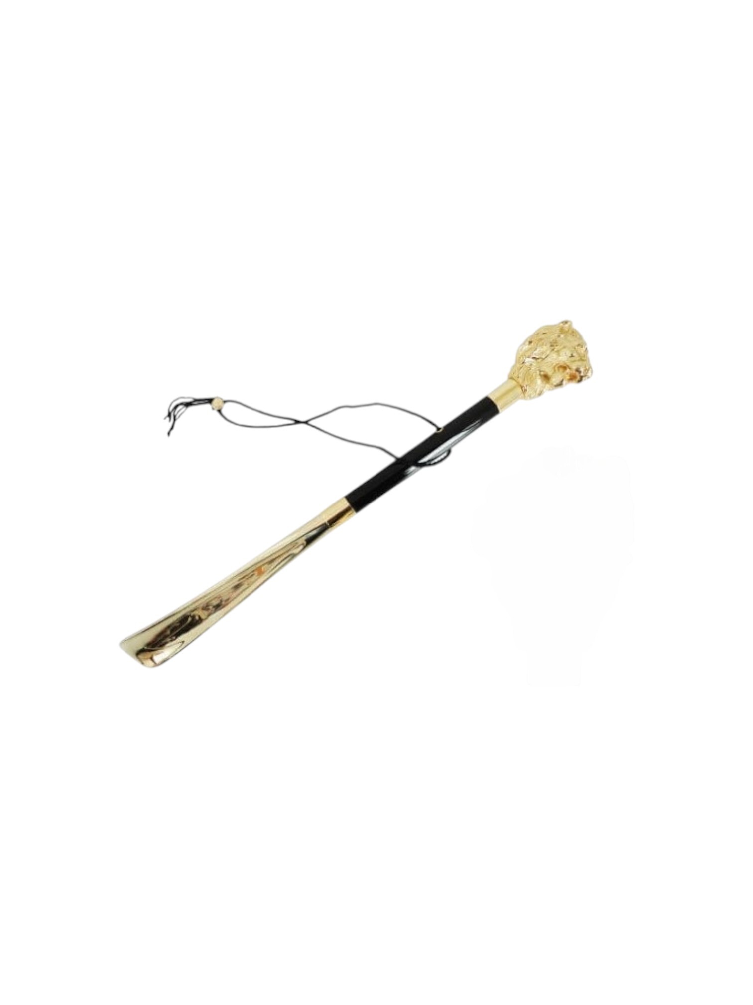 Ложка для обуви Pasotti - с позолоченной дизайнерской ручкой в форме головы льва воплощает в себе мощь, благородство и безупречный вкус. Каждая деталь величественной головы царя зверей - от проработанной гривы до властного взгляда - искусно отлита и покрыта изысканным золотым покрытием, демонстрируя высочайший уровень мастерства и роскоши. Идеальный выбор для тех, кто стремится подчеркнуть свой статус, уверенность для вечной классики, превращая каждое движение в акт изысканности.