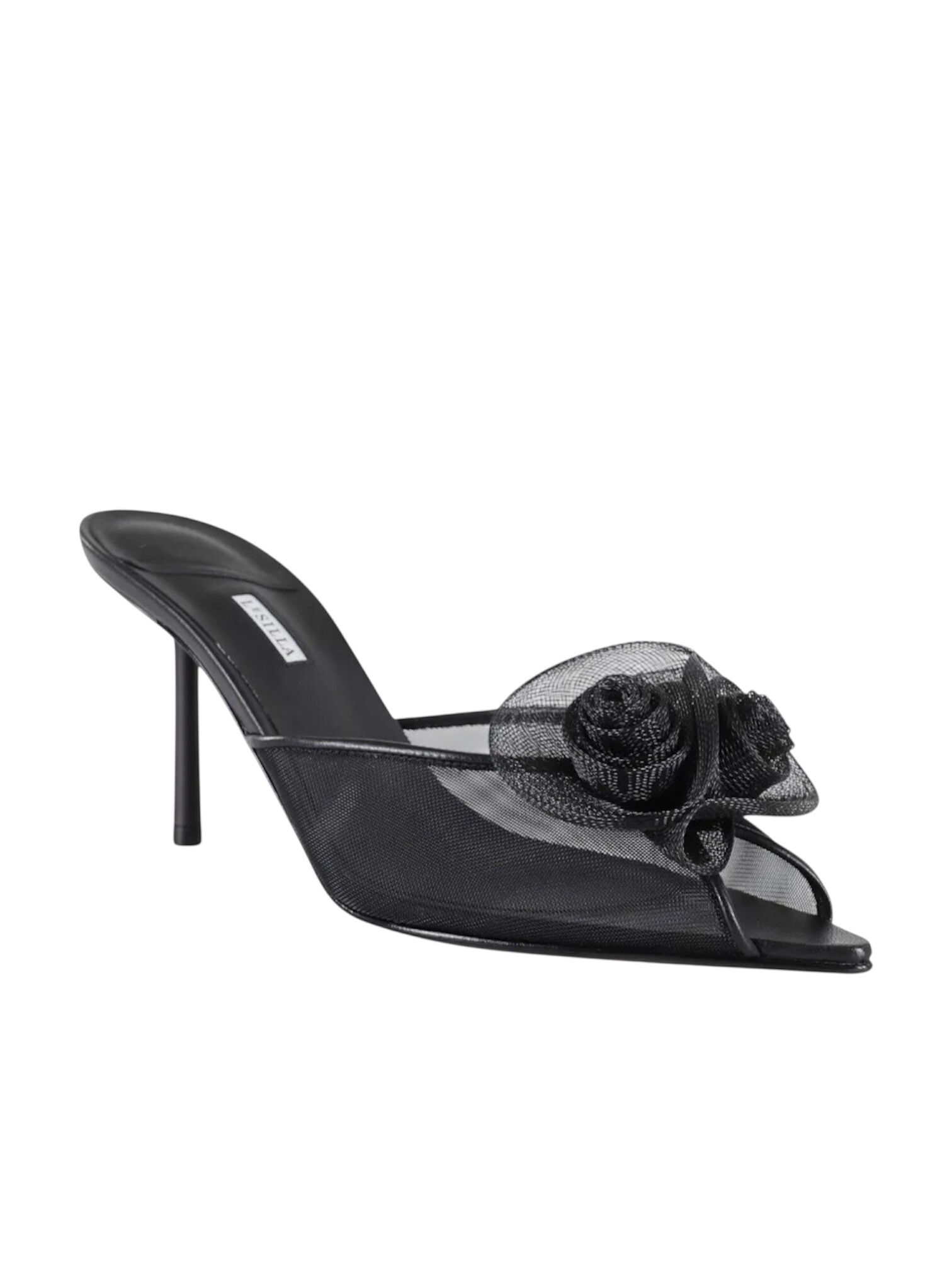 Мюли Le Silla - воплощающие элегантность и сложный дизайн. Модель выполнена в глубоком черном цвете и украшена цветочной аппликацией, которая добавляет образу романтичный и утонченный акцент. Заостренный носок визуально удлиняет стопу, а скульптурный каблук придает походке грацию и уверенность. Каждый элемент тщательно проработан: верх и подкладка из полиамида и телячьей кожи обеспечивают комфорт, а подошва из 100% телячьей кожи гарантирует долговечность и мягкость. Идеально для: особых мероприятий, вечерних выходов и торжественных случаев, где важны роскошь, качество и итальянское мастерство.
