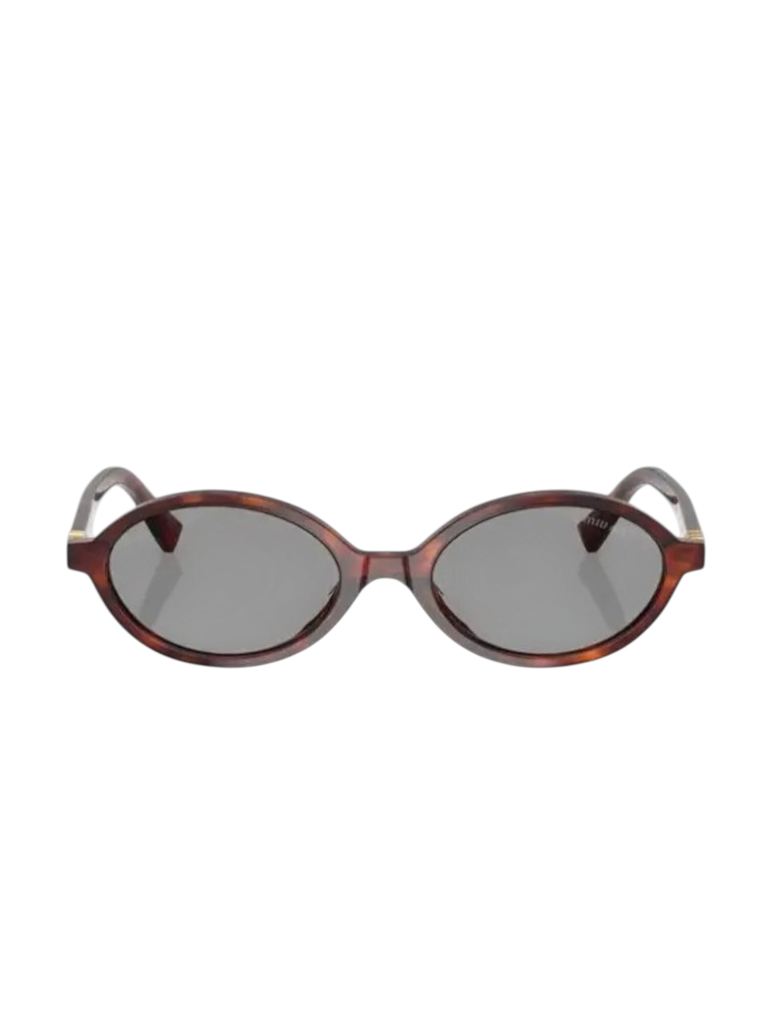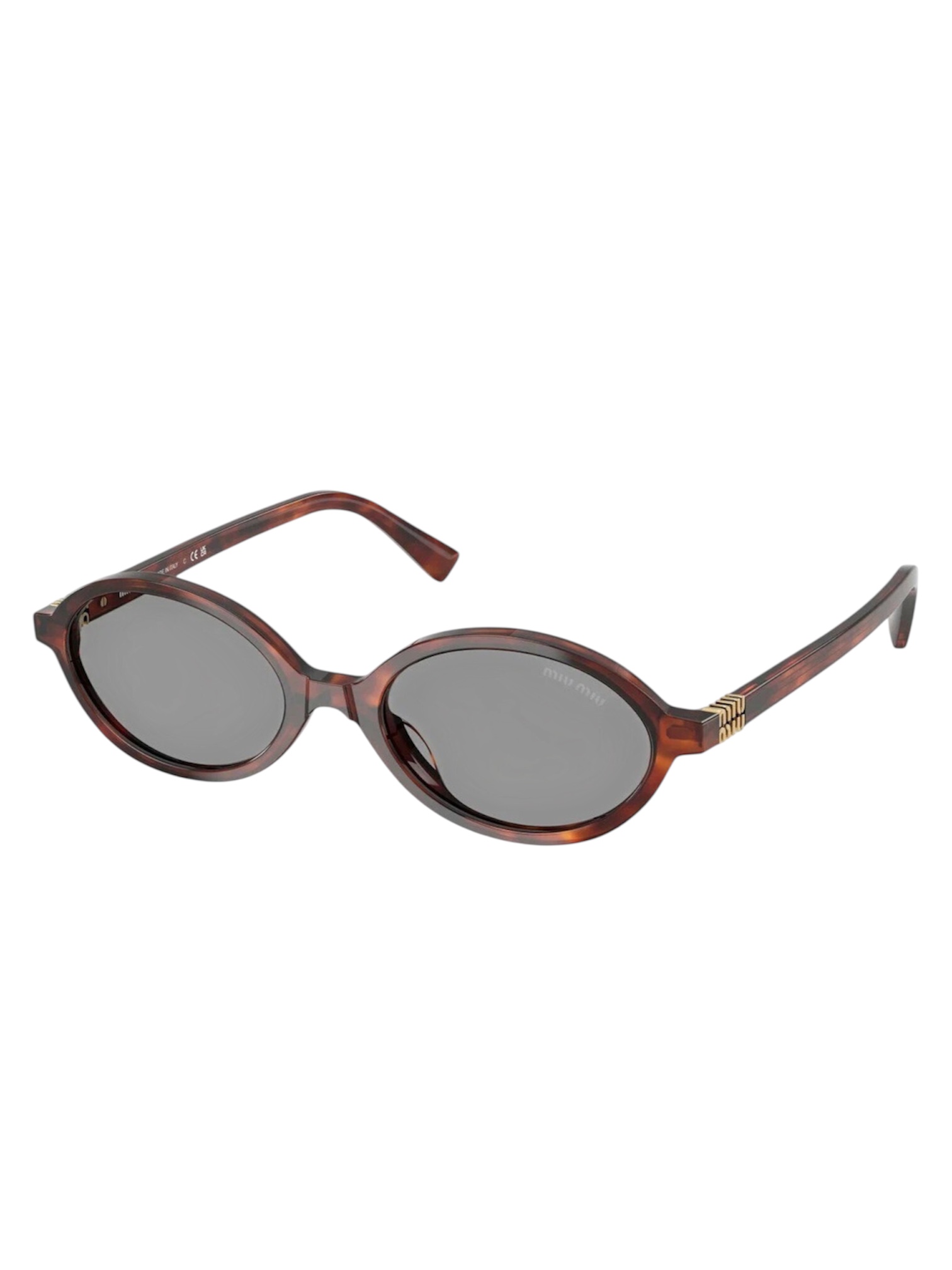 Очки Miu Miu - выполнены в стильной овальной оправе из ацетата в благородном оттенке «черепаховый». Тёмные линзы обеспечивают надёжную защиту от ультрафиолета, сохраняя комфорт для глаз даже в яркий солнечный день. На заушниках - изящный золотистый декор с фирменным акцентом, подчёркивающий элегантность модели. Лёгкая конструкция и плавные линии оправы делают аксессуар универсальным и подходящим как для повседневных образов, так и для особых случаев.