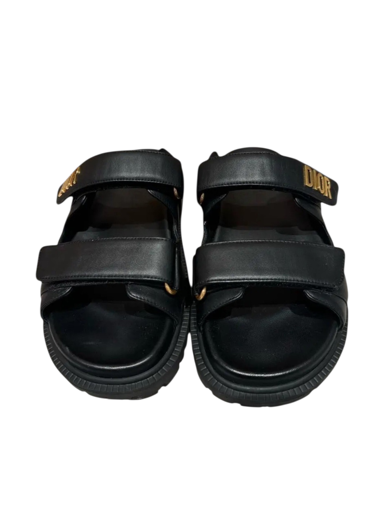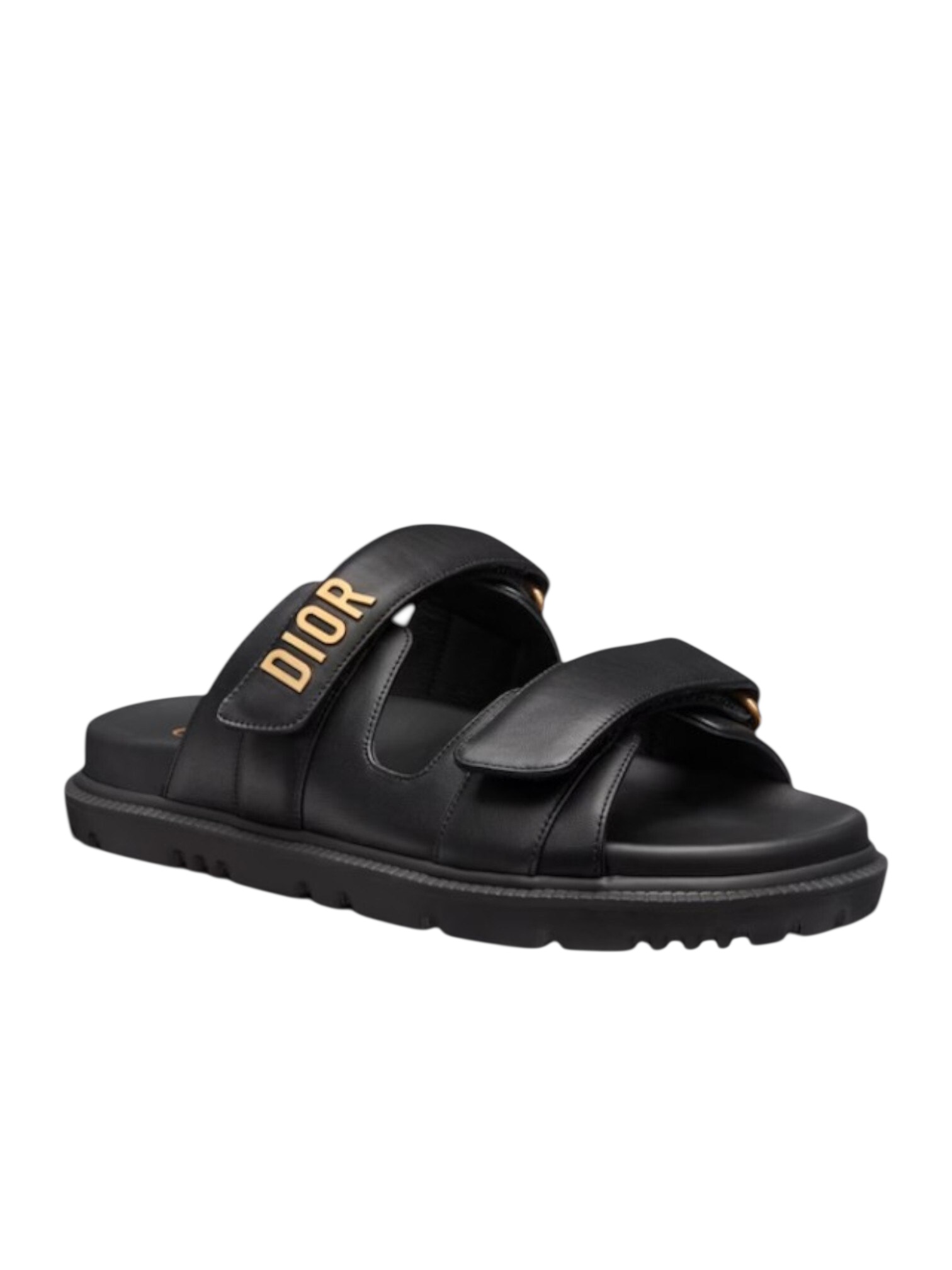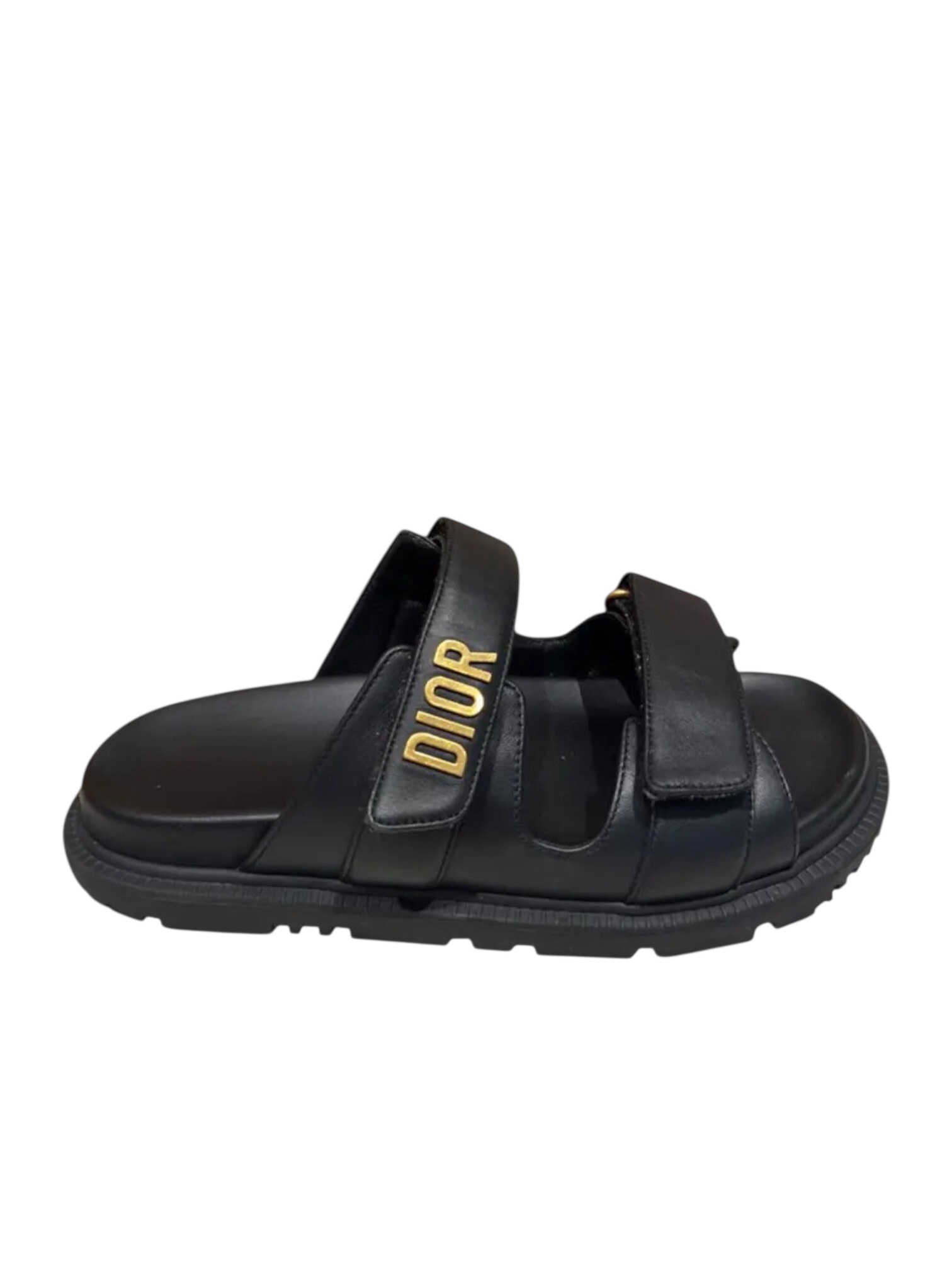 Пантолеты Christian Dior - выполнены в стильном современном дизайне, сочетающем комфорт и элегантность. Модель изготовлена из мягкой черной кожи и оснащена двумя широкими ремешками с регулируемой застежкой на липучке для удобной посадки. Один из ремешков украшен золотистой надписью DIOR, придающей обуви роскошный акцент. Легкая анатомическая стелька и рельефная подошва обеспечивают комфорт при длительной носке и надежное сцепление с поверхностью. Эти пантолеты подойдут как для повседневного образа, так и для стильного отдыха, добавляя образу статусности и безупречного вкуса.