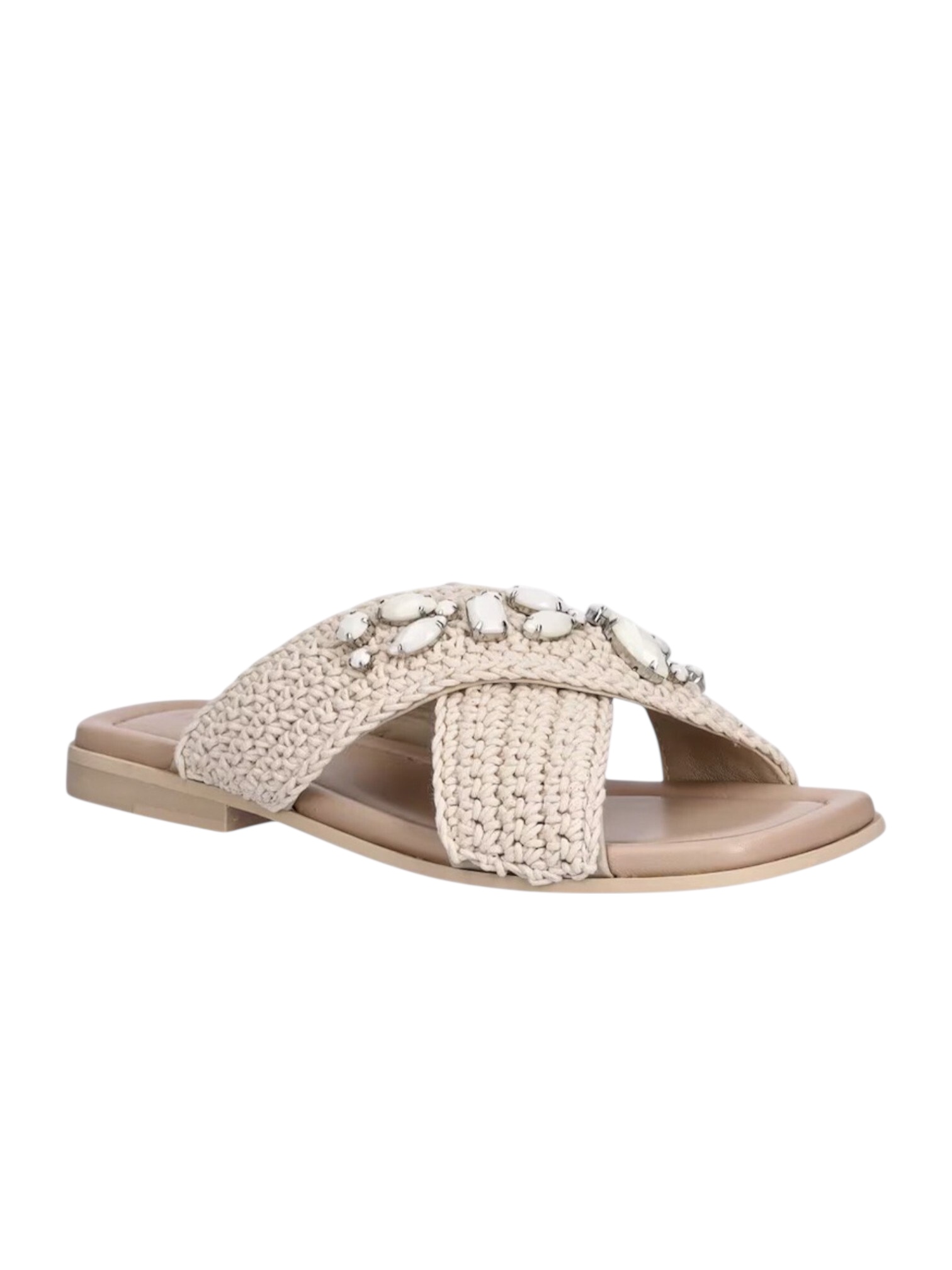 Пантолеты Inuikii - сочетающие в себе ручное мастерство и современный гламур. Модель выполнена с мягким вязаным верхом, созданным вручную для уникальной текстуры и комфорта. Удобная кожаная стелька обеспечивает поддержку стопы, а нескользящая подошва с небольшим каблуком гарантирует устойчивость и легкость при ходьбе. Сияющие кристаллы разных форм, украшающие верх, добавляют нотку блеска и элегантности, превращая эти шлепанцы в идеальный акцент для повседневных образов. Идеально для: прогулок, летних вечеринок и повседневной носки, где важны комфорт, уникальность и нотка гламура.