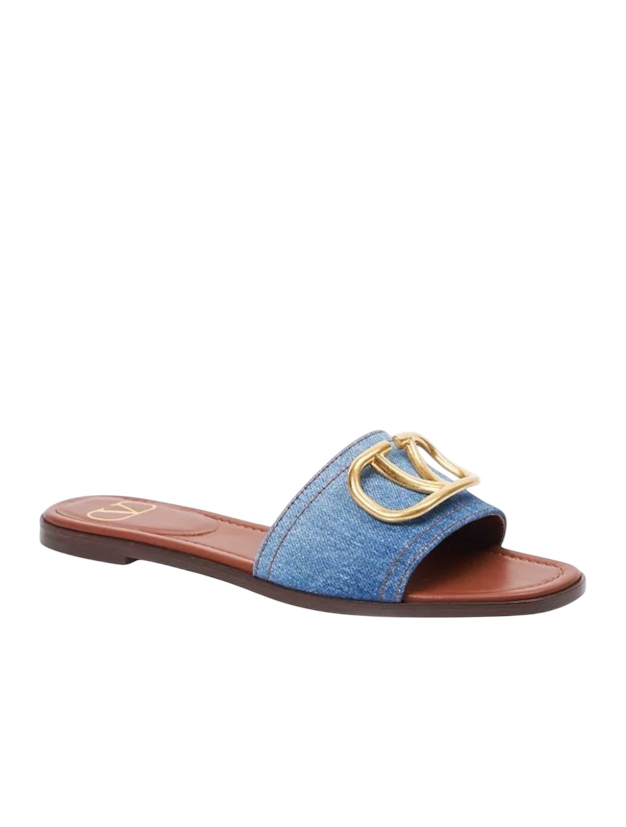 Шлёпанцы Valentino Garavani - идеальный сплав непринужденного комфорта и узнаваемой роскоши бренда. Их визитная карточка - верх из премиального джинсового материала, придающий образу актуальную, расслабленную ноту. Деним выполнен в классических оттенках синего или других сезонных цветах, всегда с безупречным качеством и текстурой, характерными для Valentino.