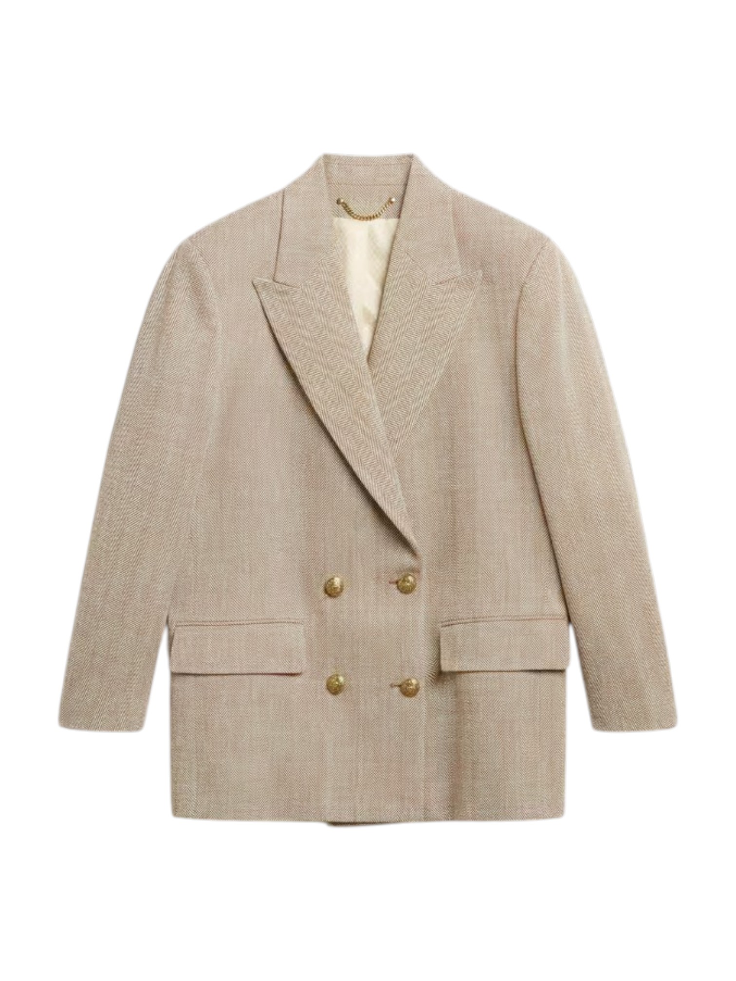 Пиджак Golden Goose - гармоничный союз традиционного двубортного силуэта и фирменной уличной эстетики бренда. Благодаря составу из 55% полиэстера и 45% шерсти, он великолепно держит форму, устойчив к износу и в то же время дарит комфорт и тепло. Классический двубортный крой с длинными рукавами и двумя удобными передними карманами делает его уместным и в офисе, и на светском мероприятии. Главная «изюминка» скрыта на спине - двойная золотая звезда, выполненная в фирменном стиле Golden Goose. Она добавляет пиджаку индивидуальности и превращает строгую вещь в объект уличного искусства. Носите его, чтобы подчеркнуть свой безупречный вкус и одновременно - любовь к нестандартным решениям.