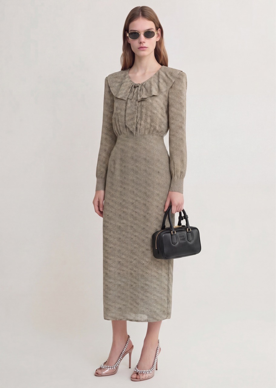 Платье Alessandra Rich - это переосмысление кэжуал-эстетики, облачая ее в роскошь благородного шелка глубокого зеленого и коричневого оттенков. Свободный, струящийся силуэт обеспечивает непринужденную легкость и максимальный комфорт для дня. Несмотря на роскошь материалов, платье идеально для прогулок, ланча или светских выходов.