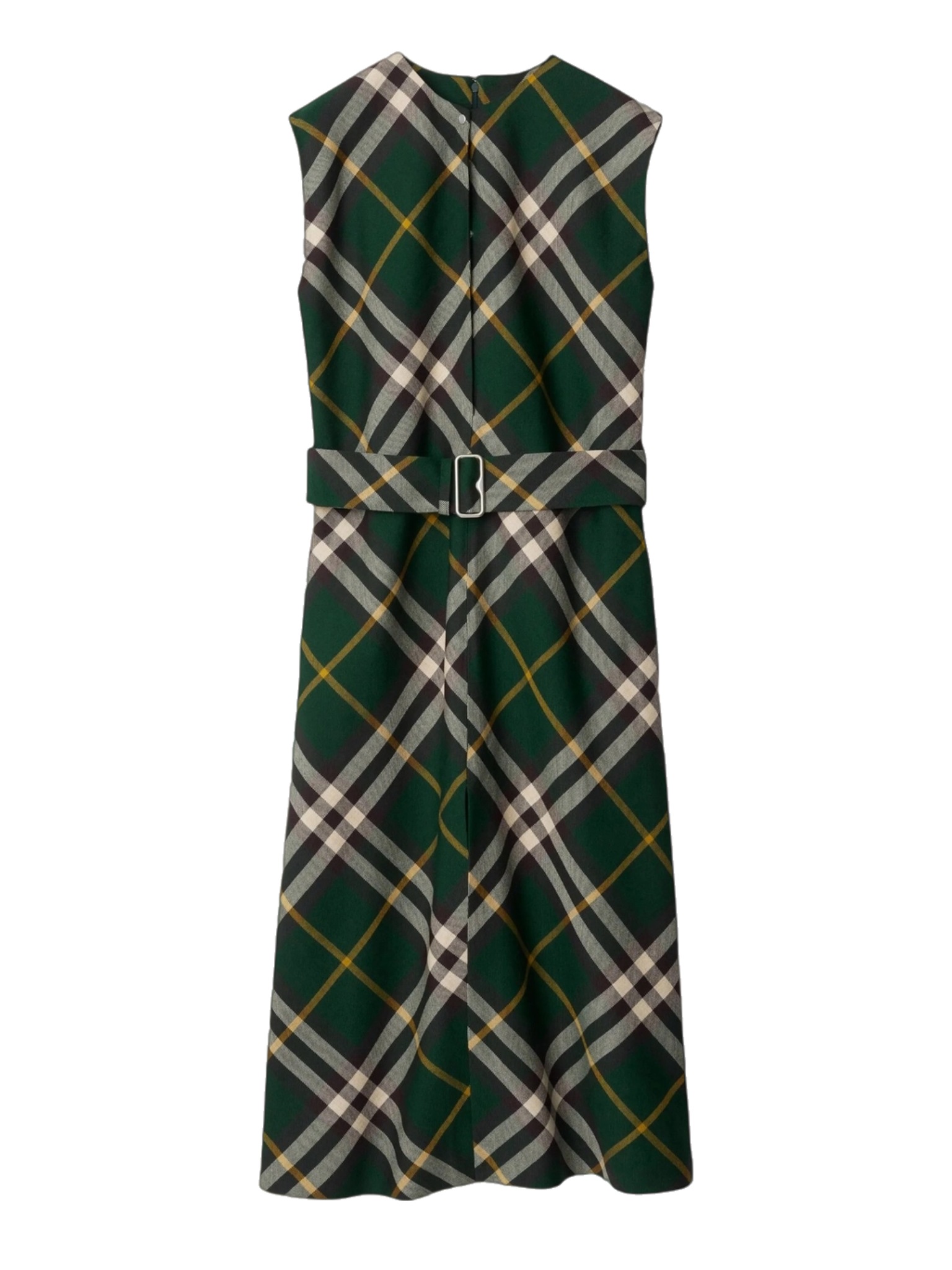 Платье Burberry - архивный символ наследия Дома. Сшитое из роскошной шерсти, оно сочетает в себе теплоту, безупречную форму и вневременную элегантность. Идеальный баланс сдержанности и дерзости, подчеркнутый серебристыми акцентами. Глубокий темно-зеленый оттенок архива Burberry придает классическому принту современную глубину и статус. 100% шерсть высшего качества – гарантия тепла, комфорта и благородной драпировки.