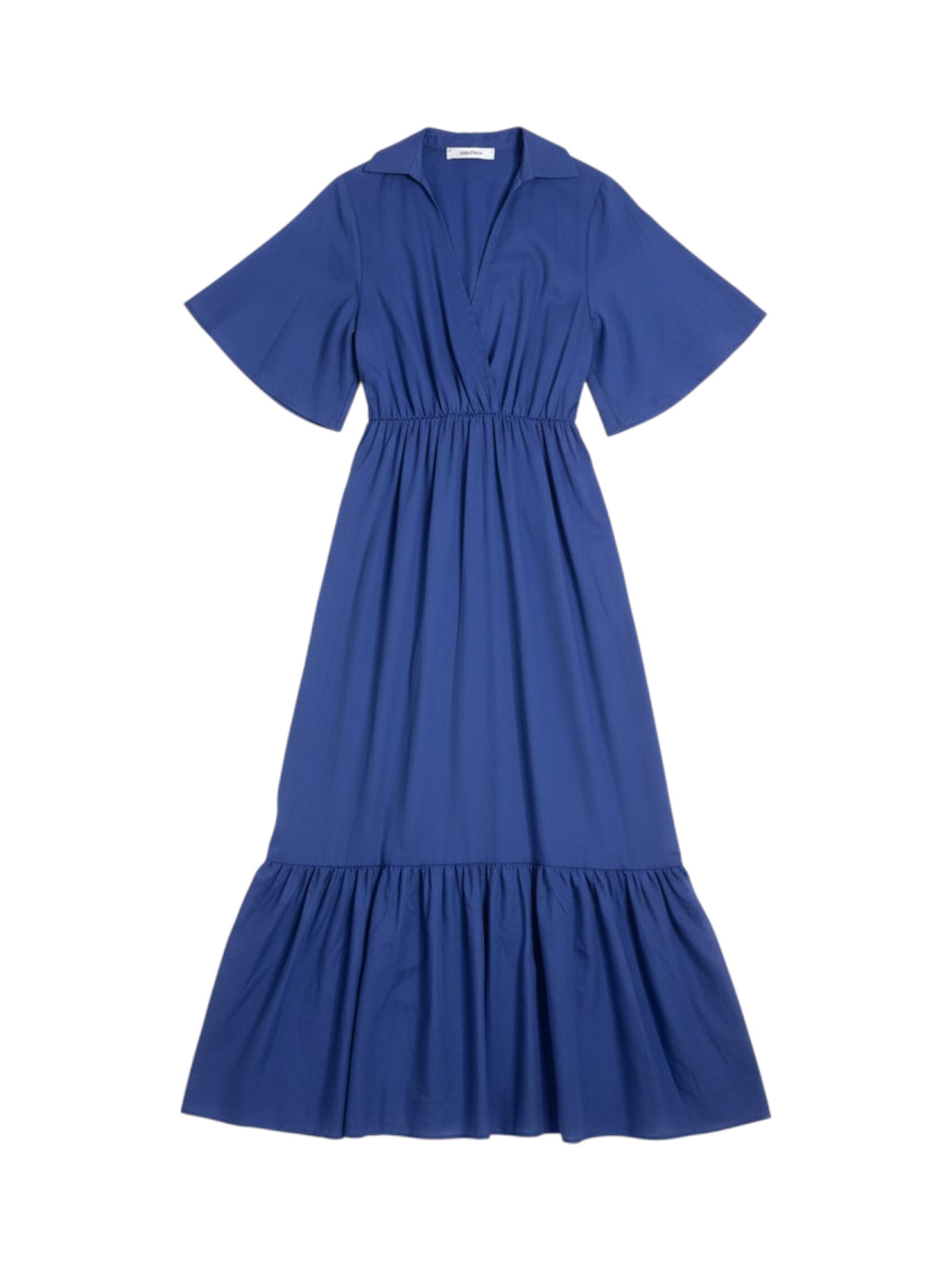 Платье Kaos - выполнено в насыщенном синим оттенке, который подчёркивает свежесть и выразительность образа. Модель имеет V-образный вырез с небольшим отложным воротником, добавляющим нотку элегантности. Широкие короткие рукава создают красивый силуэт и обеспечивают комфорт, а подчёркнутая линия талии с мягкой сборкой формирует изящный женственный акцент. Пышная нижняя часть с широким оборочным ярусом придаёт платью воздушность и динамичность. Это универсальная модель, которая подойдёт как для повседневных летних выходов, так и для более нарядных случаев, сочетая удобство и стиль в одном образе.