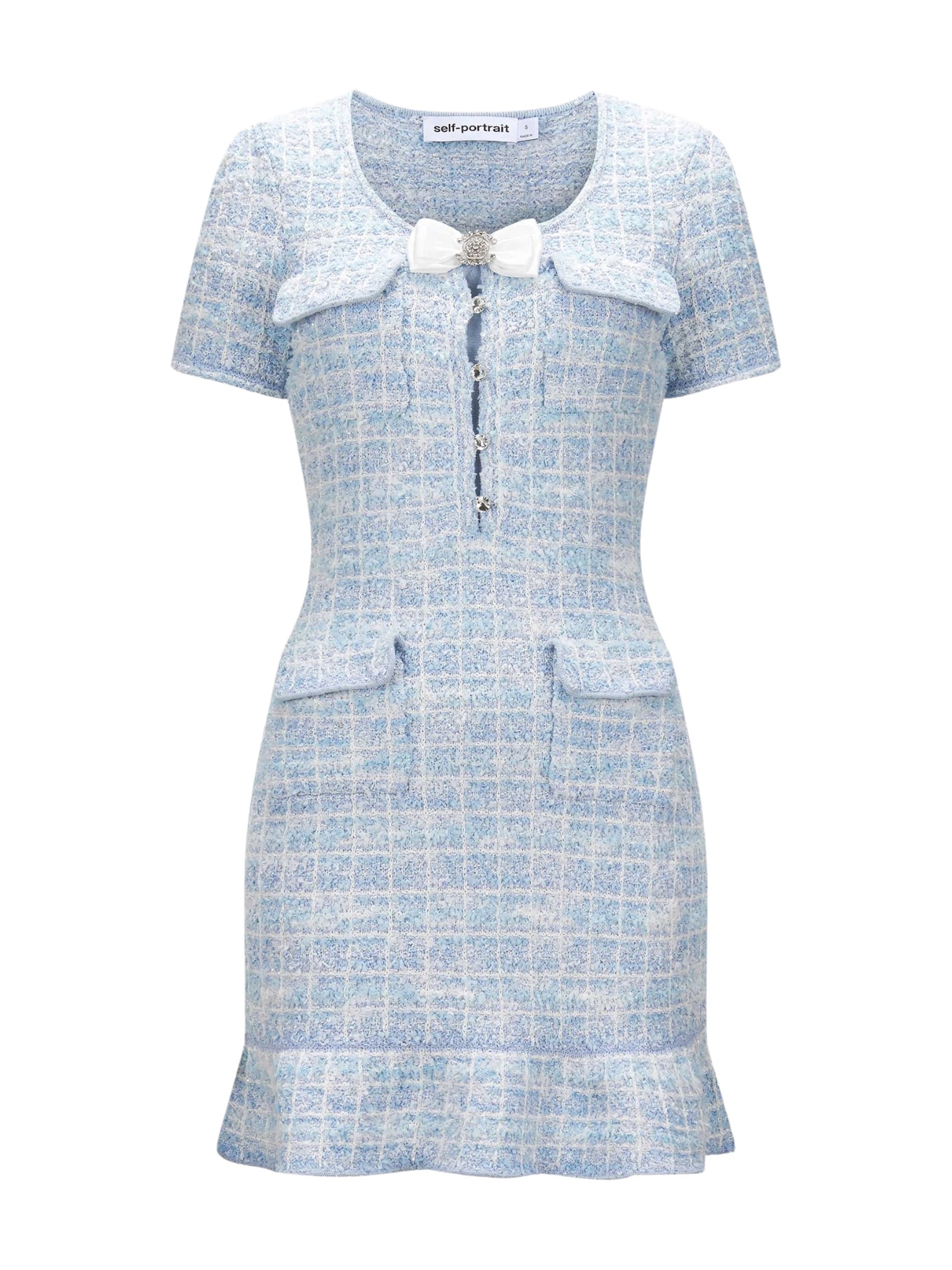 Платье Self-Portrait - настоящая ода женственности и вниманию к деталям. Нежный голубой оттенок напоминает весеннее небо и придаёт образу свежесть. Приталенный силуэт мягко подчёркивает талию, создавая изящные изгибы. Короткие рукава и короткая застёжка на пуговицы делают платье удобным для тёплого сезона. Два нагрудных накладных кармана с клапанами добавляют нотку игривой функциональности - почти как у любимой рубашки, но гораздо элегантнее. Главная деталь - объёмный бант, расположенный спереди по центру. Он контрастирует с гладкой тканью, притягивая взгляд и придавая платью кокетливый, праздничный характер.