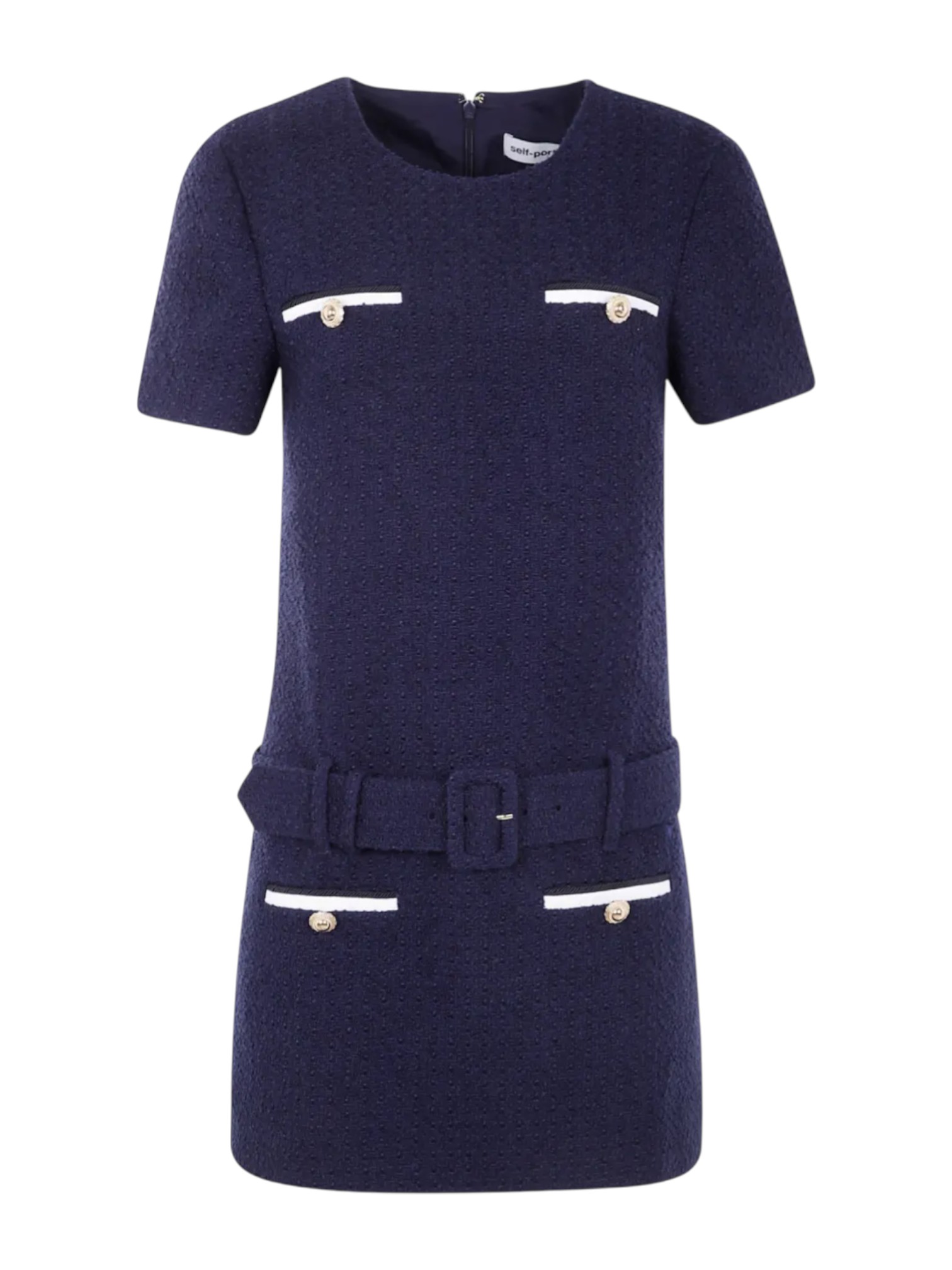 Платье Self-Portrait - представляет платье, в котором традиционная эстетика твида и букле встречается с современным вниманием к деталям. Эта модель - настоящая находка для тех, кто ценит архитектуру кроя и продуманную функциональность в каждом элементе. Выходите в свет. Пусть эти золотые пуговицы станут вашими маленькими союзниками в большом мире моды.