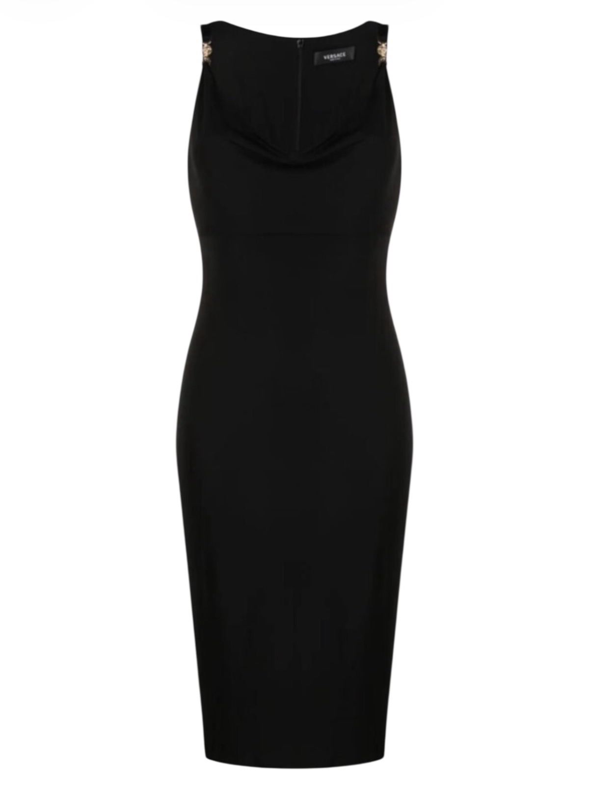 Платье Versace - это образец безупречного кроя, использования первоклассных тканей и внимания к каждой детали. Черный цвет делает его универсальной жемчужиной гардероба, а ДНК Versace гарантирует незабываемое впечатление. Это платье - инвестиция в незабываемый образ, излучающий уверенность, сексуальность и непревзойденный итальянский шик.
