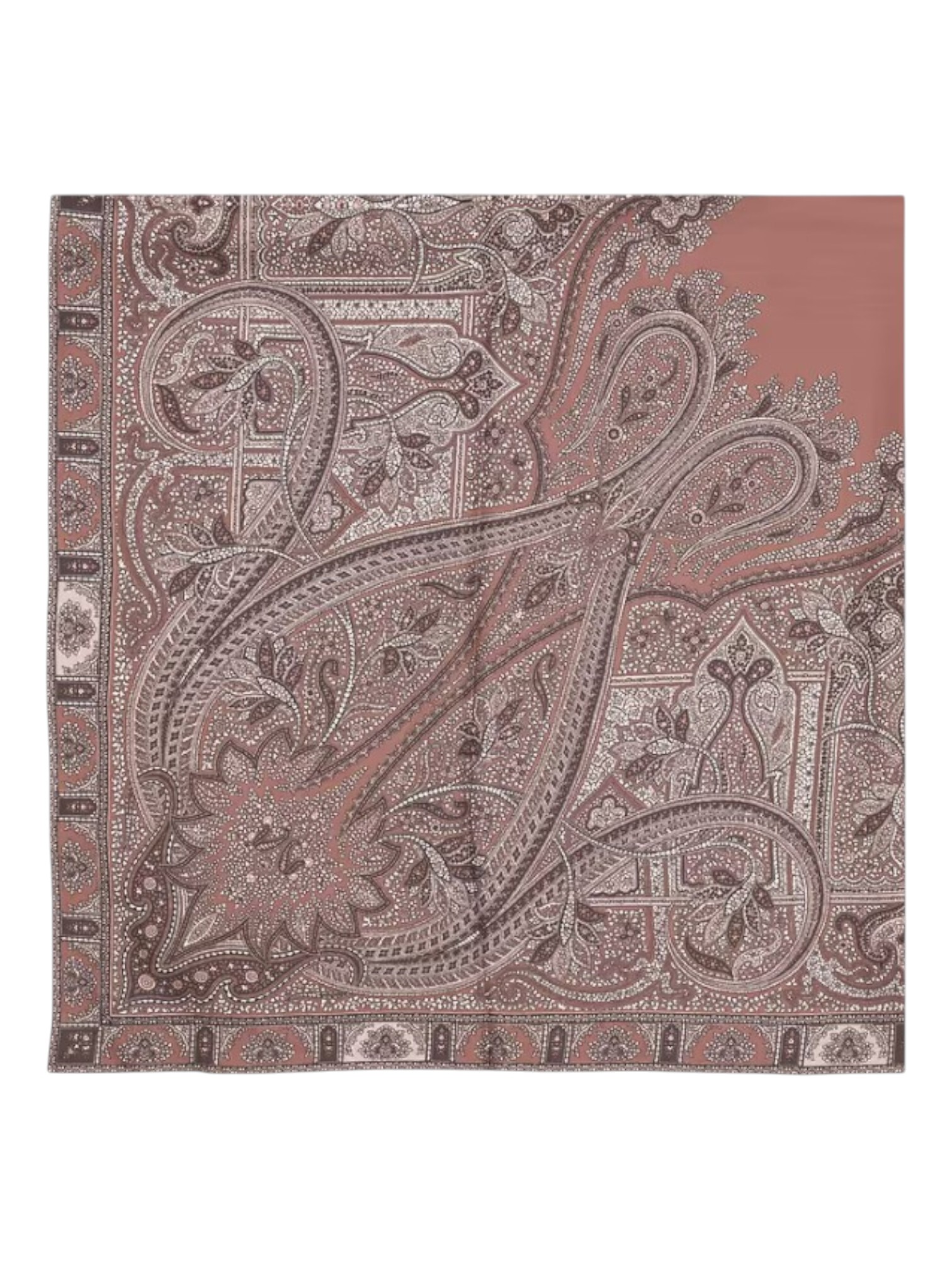 Платок Saint Laurent - выполнен из 100% натурального шелка с гладкой отделкой. Украшен изысканным восточным узором - мандалой в стиле пайсли, что придает аксессуару мистическое звучание. Универсальный элемент для создания утонченного образа. Этот квадратный платок - не просто аксессуар, а настоящий артефакт, наполненный символизмом и безупречным парижским стилем.