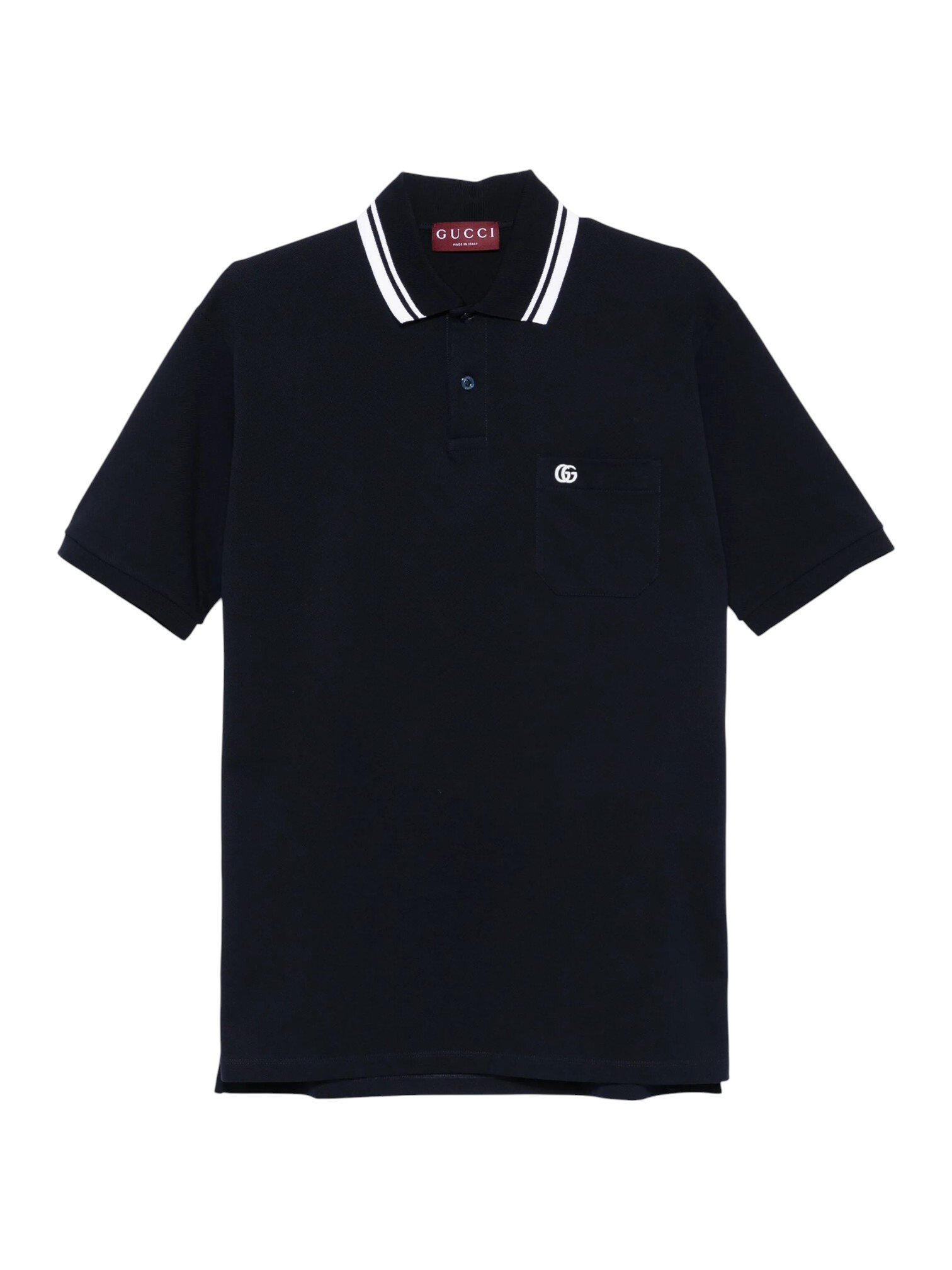 Поло Gucci - выполненная из высококачественного хлопка. Модель насыщенного темно-синего оттенка сочетает в себе классический крой и фирменные детали бренда. Укороченный ряд пуговиц и нагрудный накладной карман подчеркивают спортивное происхождение модели, а контрастная окантовка в рубчик добавляет костюмированности и завершенности образу. Центральным акцентом становится логотип Double G, символизирующий наследие и безупречный вкус.