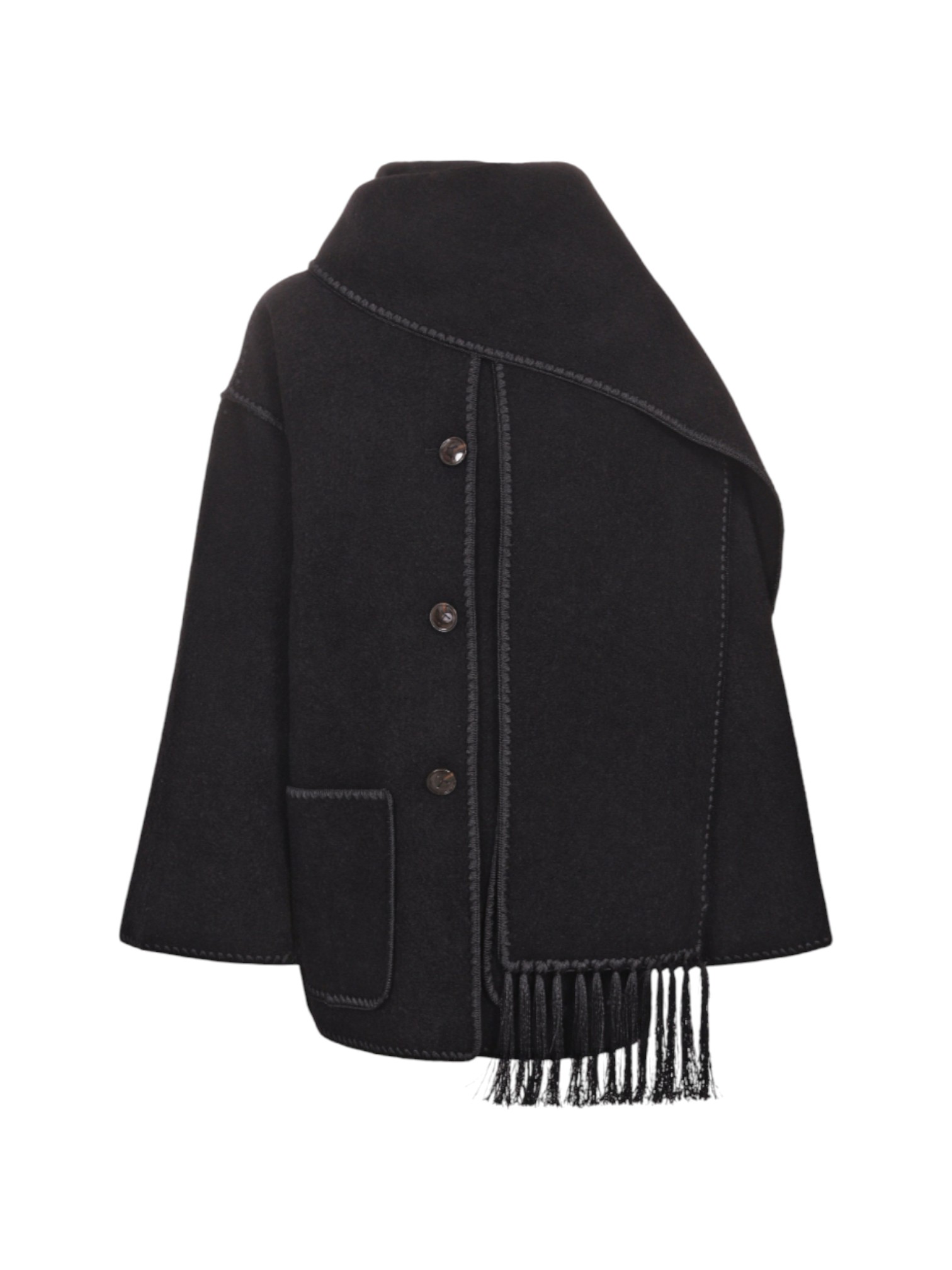 Полупальто Totême - не просто верхняя одежда, а тщательно продуманный образец скандинавского дизайна, где каждая деталь имеет значение. Модель с лаконичным однобортным кроем, двумя накладными карманами и культовым широким воротником-шалем с бахромой. Деталь ручной работы - отделка краев контрастными обметочными стежками - подчеркивает исключительное внимание к деталям. Оно станет завершающим акцентом любого образа, от повседневного с джинсами и ботинками до элегантного с платьем и сапогами.