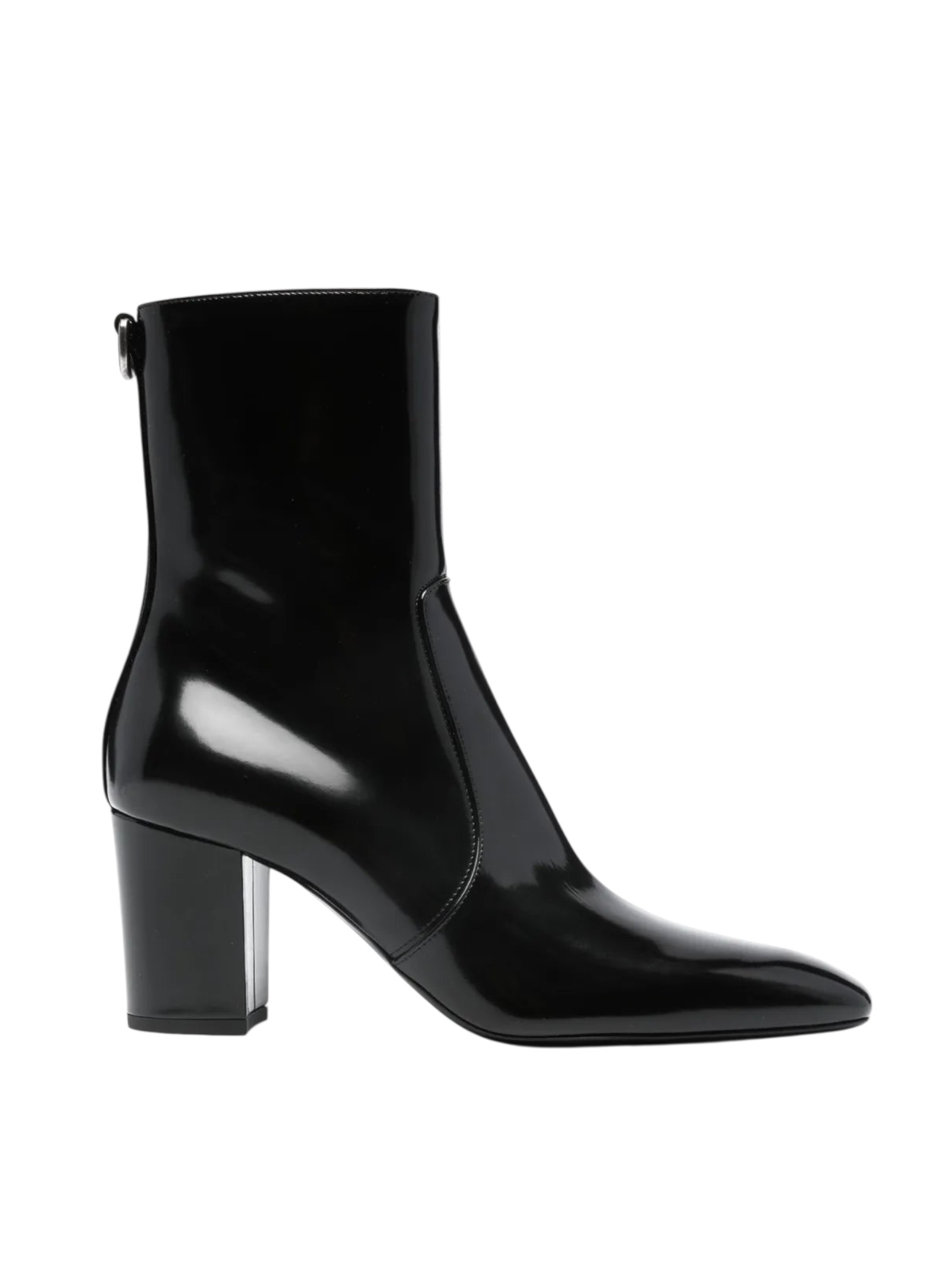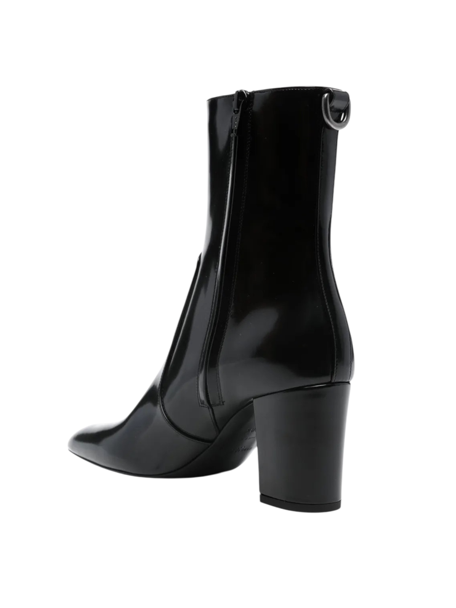 Полусапоги Saint Laurent - это воплощение элегантности и стиля. Изготовленные из глянцевой кожи, они украшены боковой застежкой-молнией, что обеспечивает удобство при надевании и снятии. Кожаная стелька и подкладка гарантируют комфорт даже при длительном использовании. Деталь в виде D-образного кольца добавляет образу завершенности и подчеркивает его утонченность. Заостренный квадратный носок и блочный каблук делают эту модель особенно привлекательной. Подошва полностью выполнена из кожи, а подкладка также состоит из этого материала, благодаря чему обувь "дышит" и сохраняет свои свойства долгие годы.