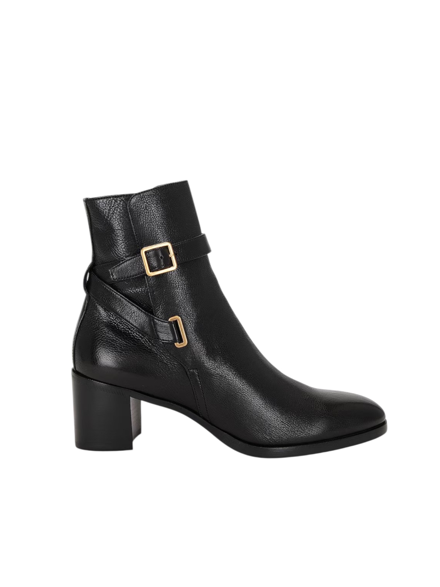 Полусапоги Saint Laurent - это сочетание стиля и комфорта. Ремешок с изысканной застежкой подчеркивает элегантность модели, а миндалевидный носок придает обуви особую женственность. Каблук добавляет высоты и уверенности каждому шагу. Изготовлены полностью из натуральной кожи, что гарантирует их долговечность и качество. Эти полусапоги станут идеальным выбором для тех, кто ценит моду и удобство.