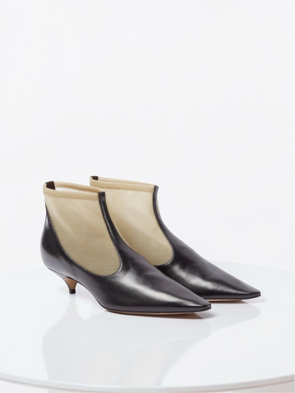 Полусапоги The Row - воплощение скульптурного подхода к обуви. Модель из гладкой кожи с замшевой подкладкой для комфорта и резиновым напылением на подошве для практичности. Силуэт, который сочетает резкую графичность с мягкостью форм. Острый мысок визуально удлиняет ногу и придает образу современную графичность и четкость. Универсальная модель, которая будет безупречно смотреться как с прямыми брюками и пальто, так и с платьем-миди.
