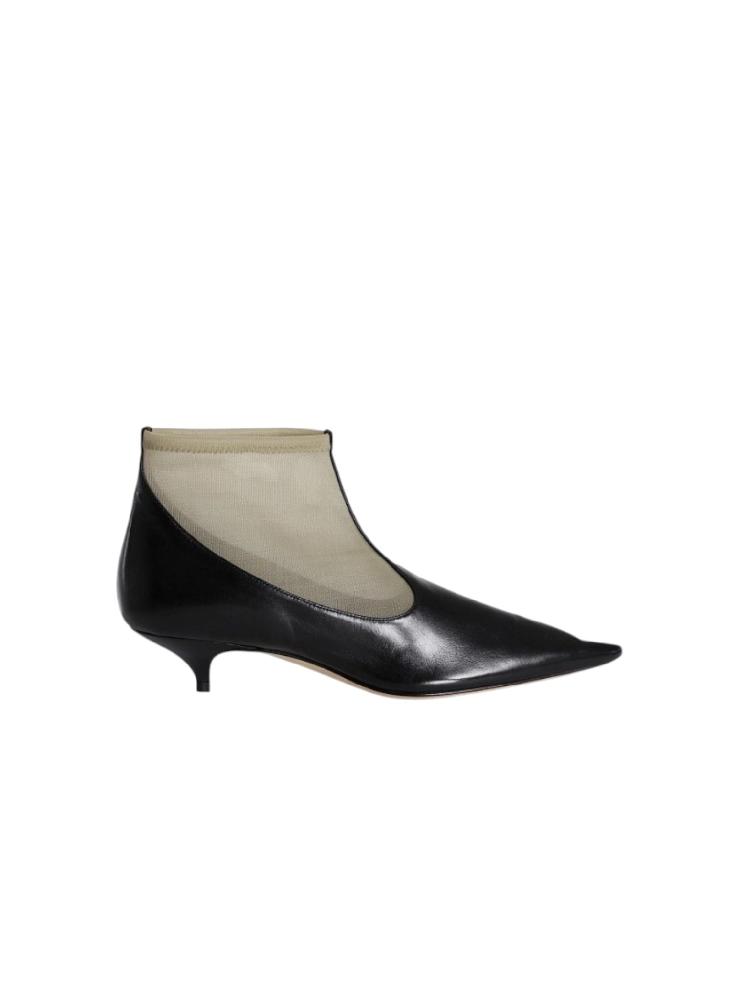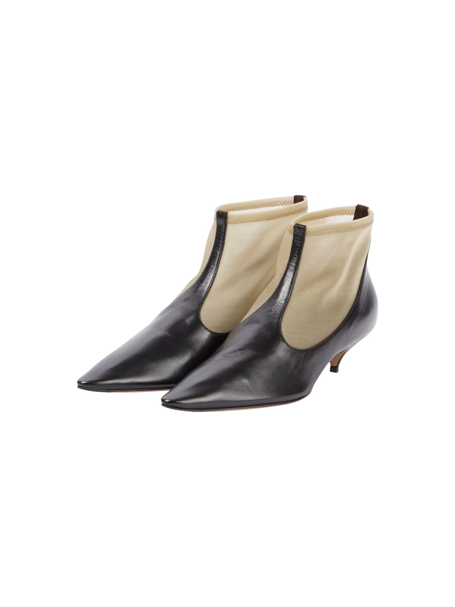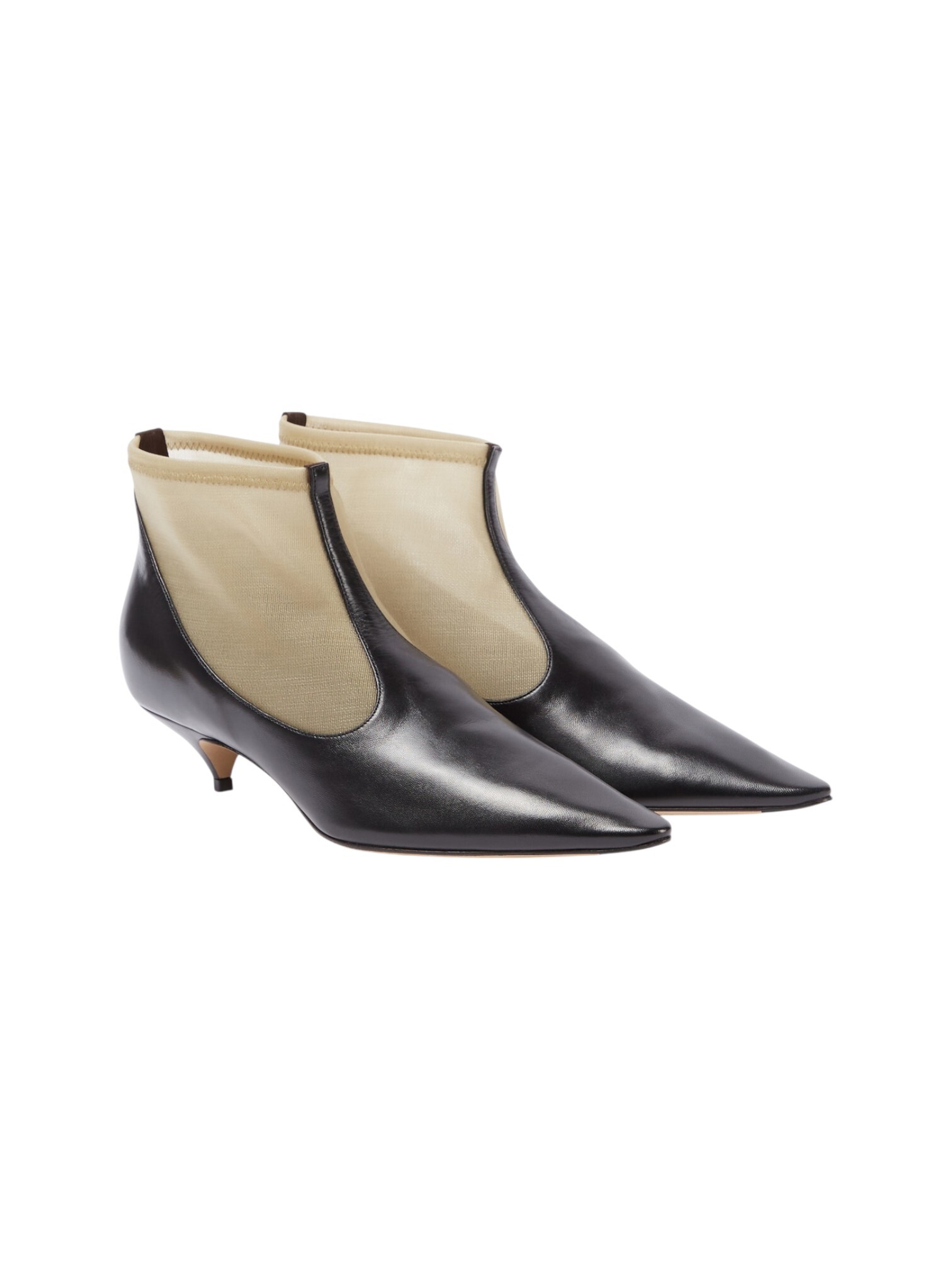 Полусапоги The Row - воплощение скульптурного подхода к обуви. Модель из гладкой кожи с замшевой подкладкой для комфорта и резиновым напылением на подошве для практичности. Силуэт, который сочетает резкую графичность с мягкостью форм. Острый мысок визуально удлиняет ногу и придает образу современную графичность и четкость. Универсальная модель, которая будет безупречно смотреться как с прямыми брюками и пальто, так и с платьем-миди.