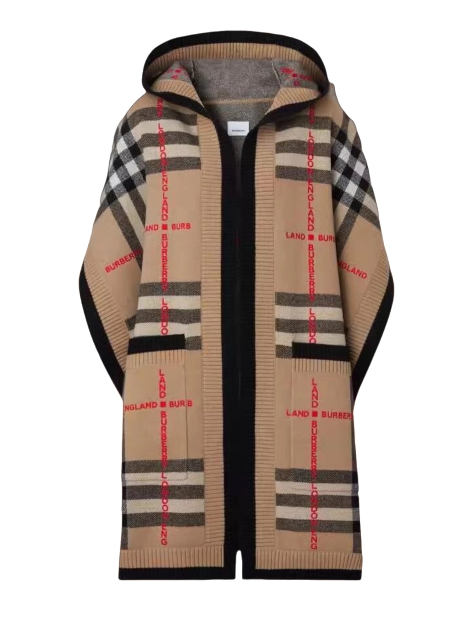 Пончо Burberry - это смелое заявление стиля, воплощающее наследие бренда через призму актуального дизайна. Основа образа – узнаваемый клетчатый принт Vintage Check, выполненный в технике интарсия. Это не просто нанесенный узор, а сложное вязаное полотно, где цветные участки создаются в процессе вязки, обеспечивая рельефность, долговечность и премиальный вид. Выполнен в аутентичном винтажном бежевом оттенке – идеальном фоне для знаковой клетки, обеспечивающем универсальность.