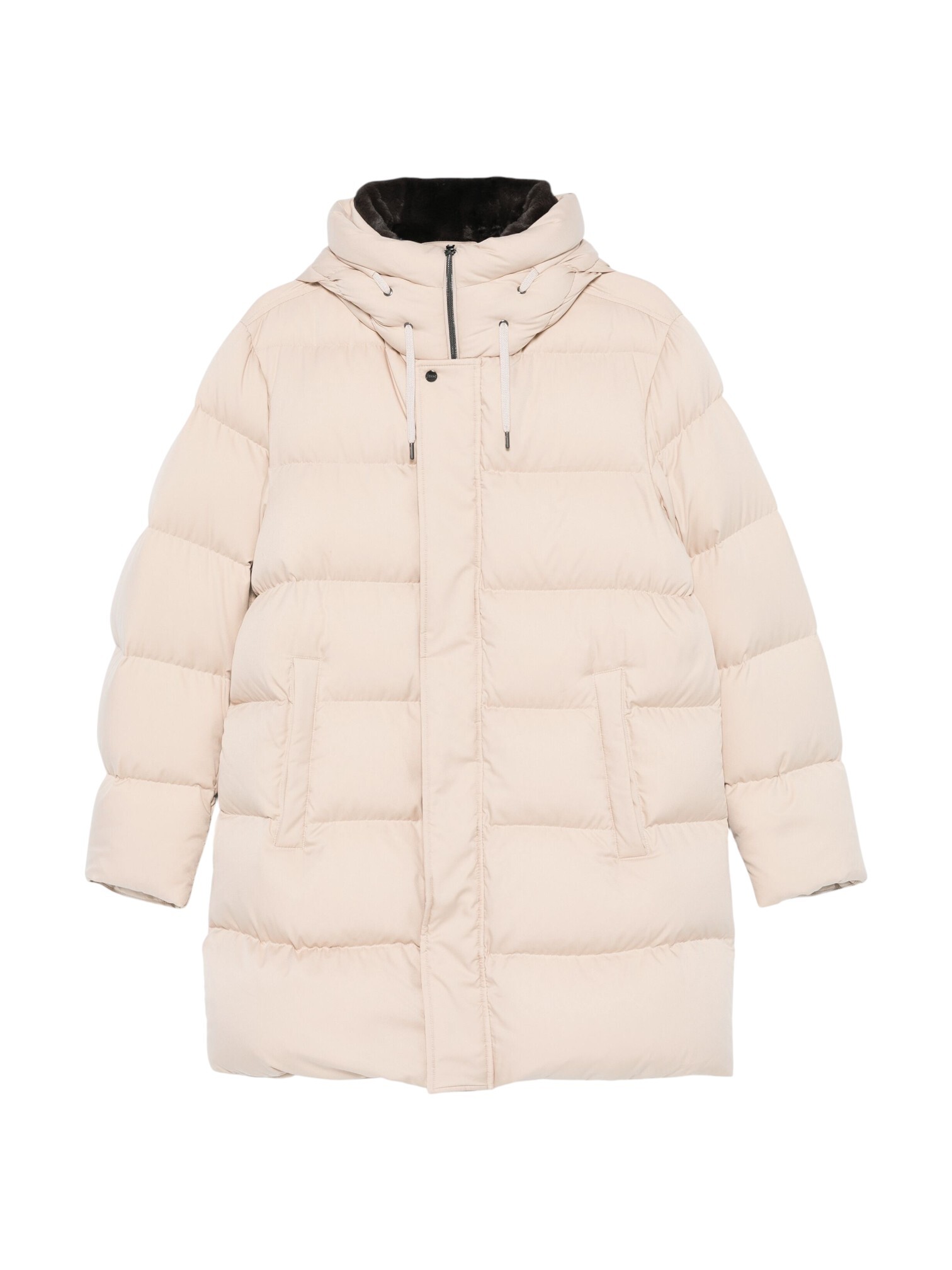 Пуховик Herno - не просто защита от холода, а воплощение итальянского мастерства в создании микроклимата, где каждая деталь служит тихой, бескомпромиссной элегантности. Двойная система закрытия: двусторонняя молния и скрытая планка на кнопках - это философия Herno в действии. Молния обеспечивает точную регулировку, планка на кнопках - ветронепроницаемость и чистоту линий. Никаких случайных сквозняков, только полный контроль над стихией. Бежевый цвет выбран не случайно. Это не кричащий нейтрал, а сложный, «пыльный» оттенок. Он обладает уникальной способностью выглядеть дорого и тактильно, не привлекая излишнего внимания, и идеально сочетается с любой палитрой.