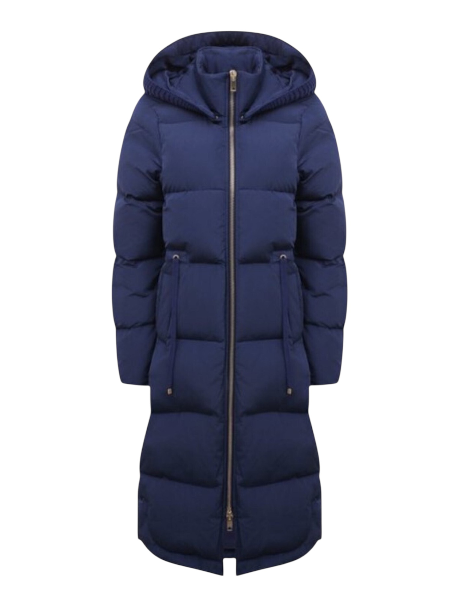 Пуховик Lorena Antoniazzi - это когда элегантная длина встречается с игрой фактур. Главная особенность - съемный капюшон из мягкой вязаной пряжи с выразительным узором. Эта фактурная деталь, словно позаимствованная из другой коллекции, эффектно контрастирует с гладкой непродуваемой тканью основного пальто. Модель обеспечивает надежное утепление. Дополнительные элементы: удобная встречная молния, воротник-стойка для защиты от ветра и съемный пояс-кулиска, позволяющий регулировать силуэт. Сочетание практичности и дизайнерской изюминки.