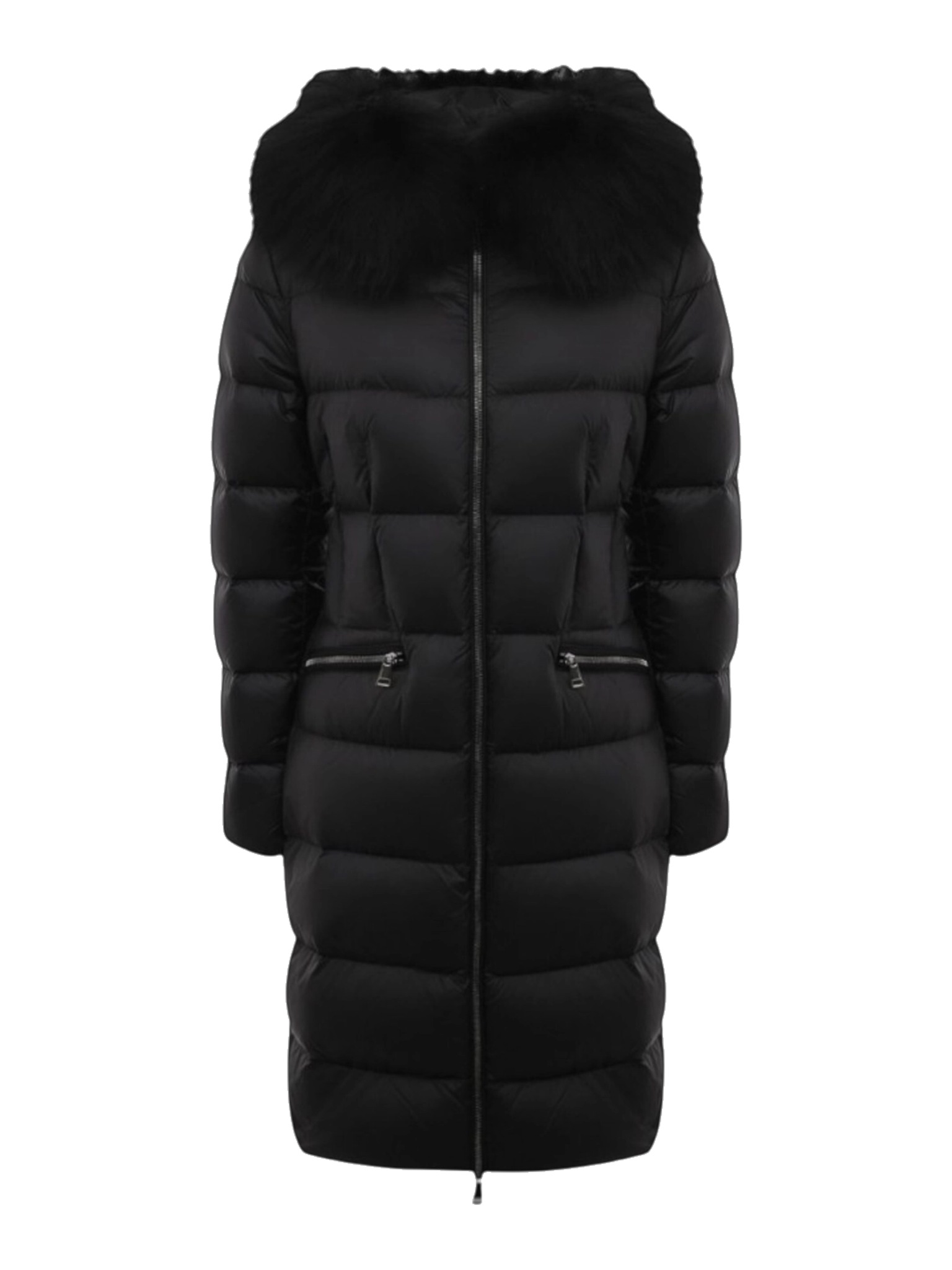 Пуховик Moncler - икона стиля и непревзойденного тепла. Удлиненный крой выше колена из легчайшего дутого материала с наполнителем из смеси пуха и пера обеспечивает максимальную теплозащиту без утяжеления. Стеганая отделка – классическая визитная карточка бренда. Главная изюминка – съемная отделка капюшона из роскошной овчины, придающая образу неповторимый шик и невероятное тепло. Классический капюшон с этой опушкой становится настоящим акцентом. Эластичный пояс мягко подчеркивает талию, создавая женственный силуэт. Практичность обеспечена двумя боковыми карманами на молнии и надежной застежкой-молнией спереди. Узнаваемая нашивка с логотипом Moncler на боку и прямой подол завершают безупречный образ непререкаемого авторитета и роскоши.